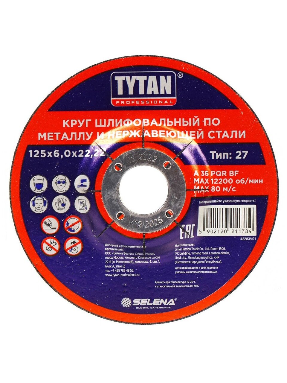 Вы можете приобрести «Круг шлифовальный по металлу и нержавеющей стали, Tytan, Professional, диаметр 125х6 мм, посадочный диаметр 22.22 мм» и другие товары в нашем интернет-магазине в Липецке по низким ценам и с бесплатным самовывозом.