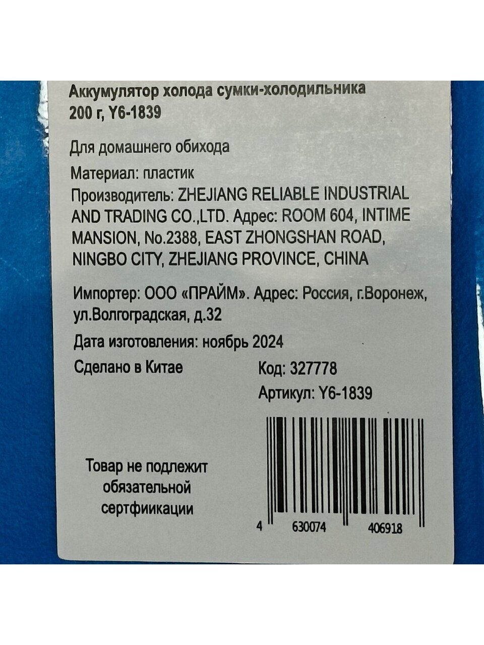 Вы можете приобрести «Аккумулятор холода сумки-холодильника 200 г, Y6-1839» и другие товары в нашем интернет-магазине в Коврове по низким ценам и с бесплатным самовывозом.