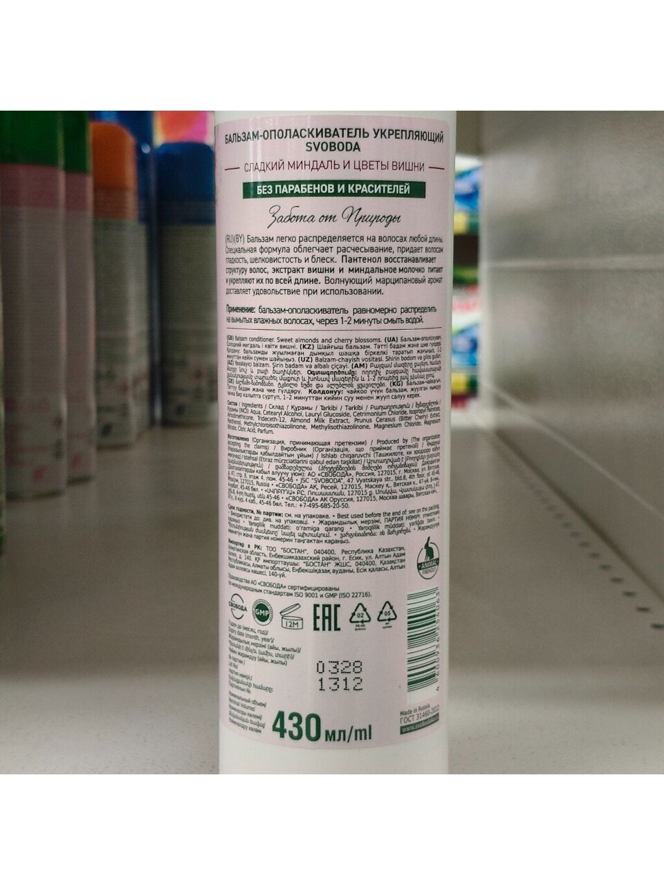 Вы можете приобрести «Бальзам-ополаскиватель для всех типов волос, Svoboda Natural, Сладкий миндаль и цветы вишни, 430 мл» и другие товары в нашем интернет-магазине в Курске по низким ценам и с бесплатным самовывозом.