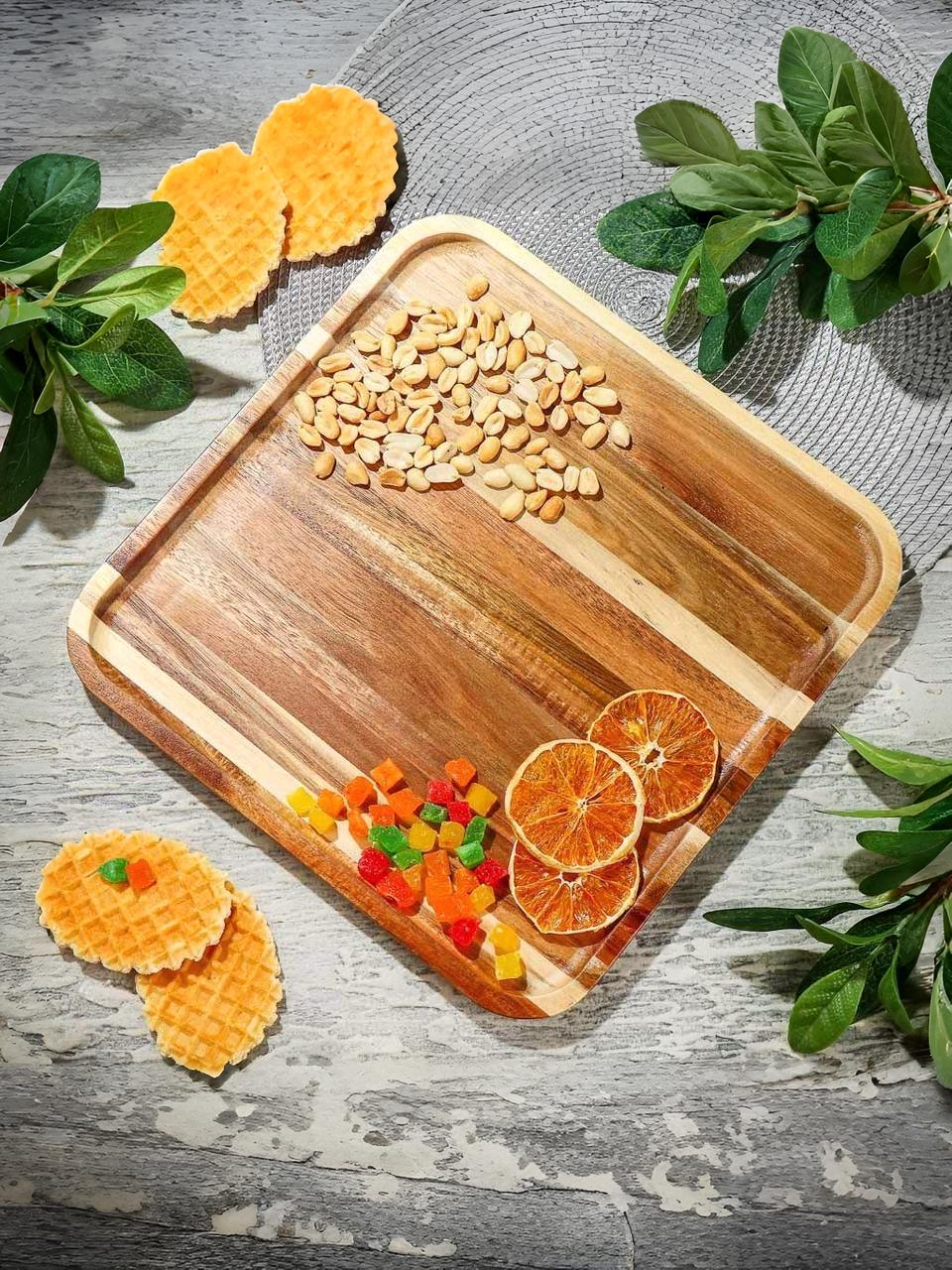 Блюдо из акации квадратной формы 30х30 см — это современное решение для сервировки и подачи. Натуральное дерево акации ценится за прочность, устойчивость к деформации и влагостойкость, что гарантирует долгий срок службы даже при активном использовании. Однотонный дизайн и бортики делают блюдо универсальным: оно подходит для нарезки, подачи закусок, сыра, фруктов на праздничный стол или в повседневной жизни.