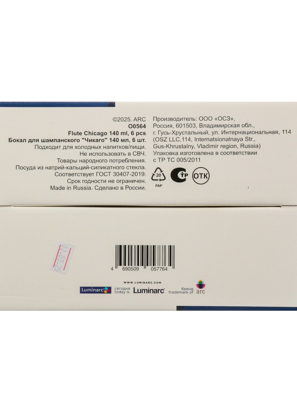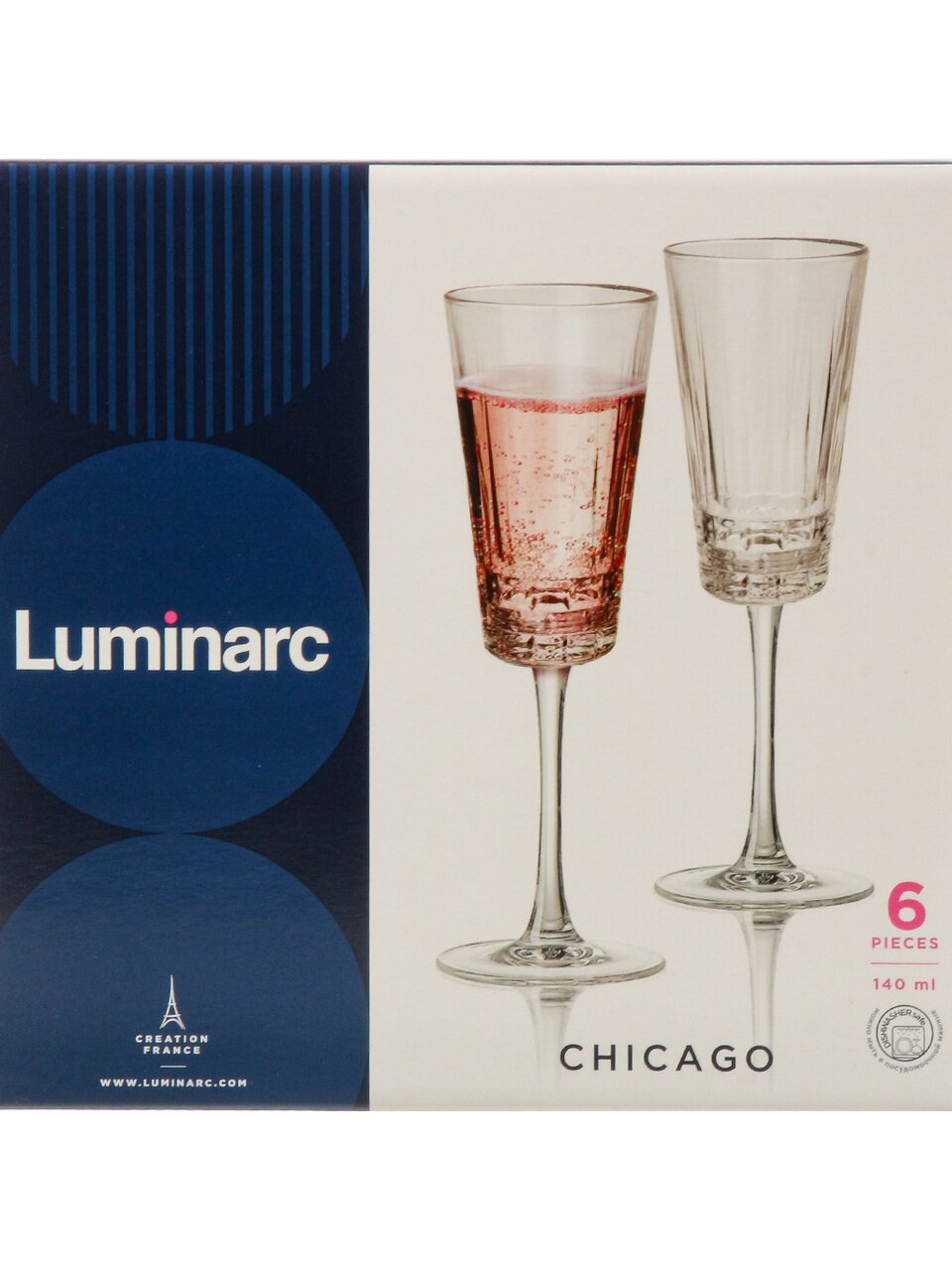 Бокалы для шампанского Luminarc Чикаго 140 мл (6 шт): стиль для праздничной сервировки, подарочная упаковка, безопасное стекло, выгодная цена.