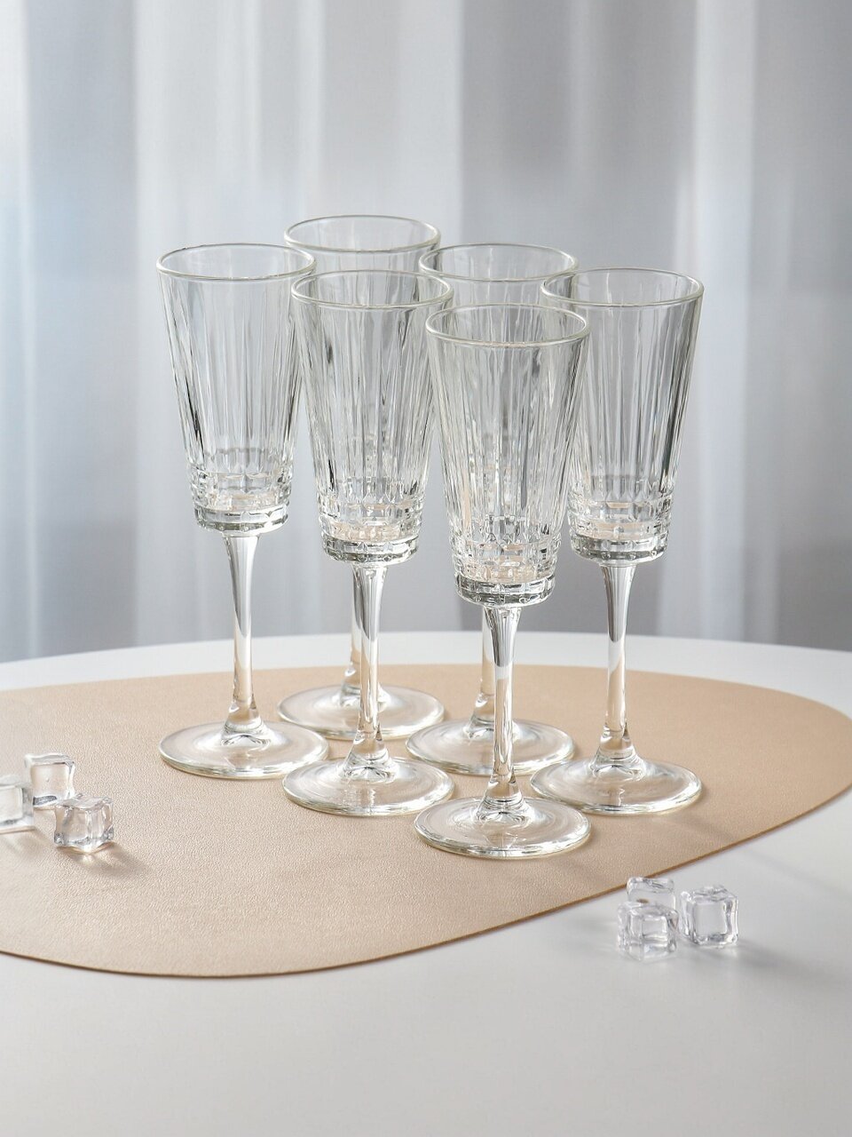 Объем каждого бокала — 140 мл. Они идеально подходят для шампанского и игристых вин, обеспечивая правильную подачу напитка.