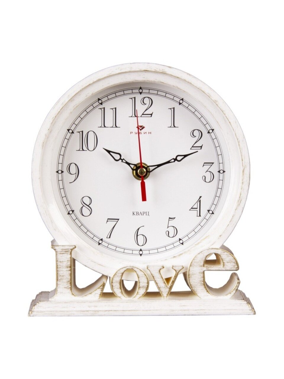 Вы можете приобрести «Часы настольные, кварцевые, 19х17 см, корпус белый с золотом, круглые, Рубин, Классика, 1916-002» и другие товары в нашем интернет-магазине в Клинцах по низким ценам и с бесплатным самовывозом.