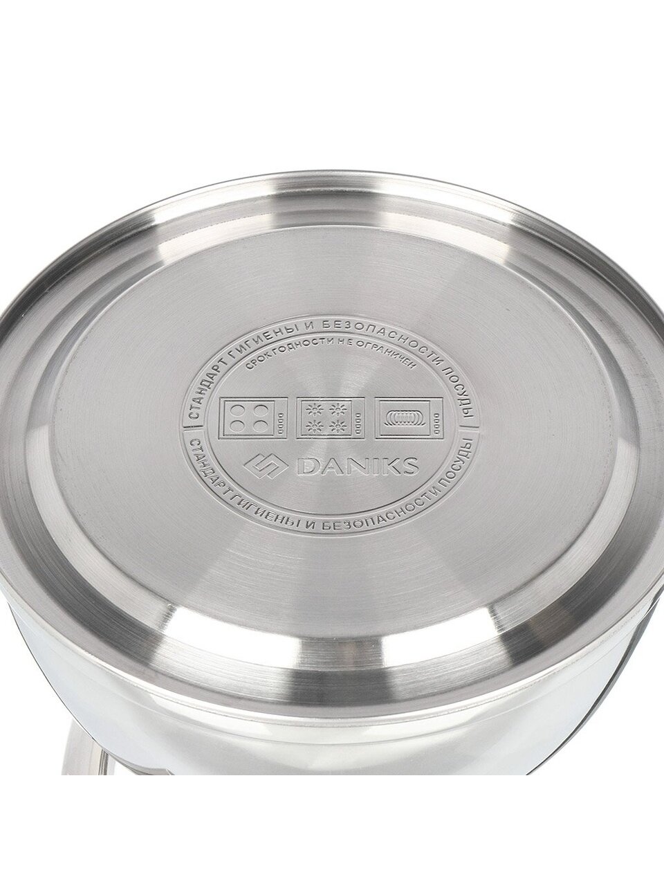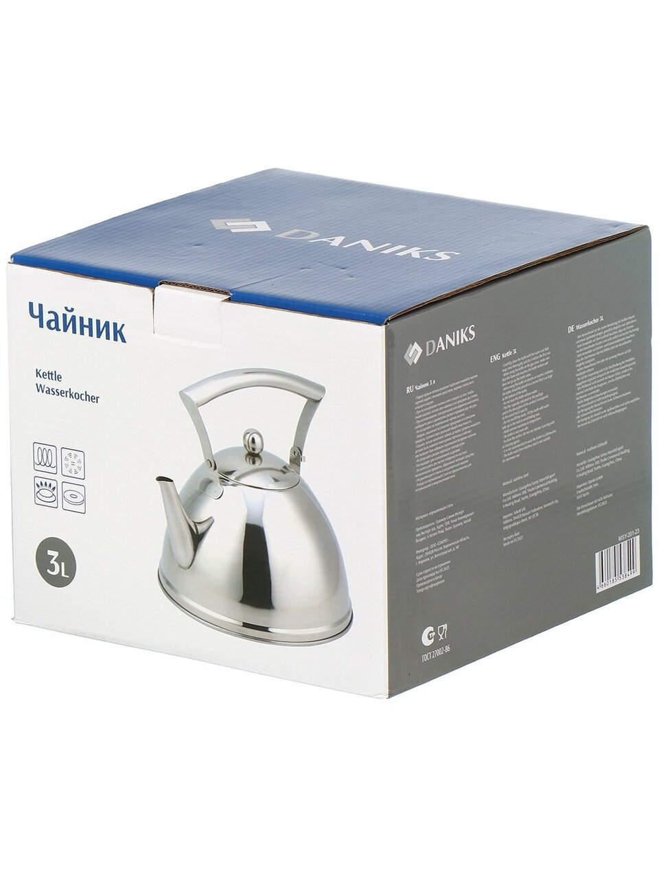 Чайник Daniks имеет привлекательный дизайн. Он станет не просто полезным аксессуаром на кухне, но и ее украшением. Изготовлен из высококачественной нержавеющей стали, которая обеспечивает безопасность, долговечность и устойчивость к деформациям.