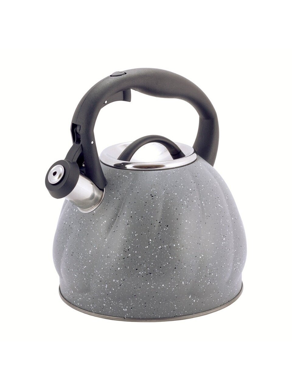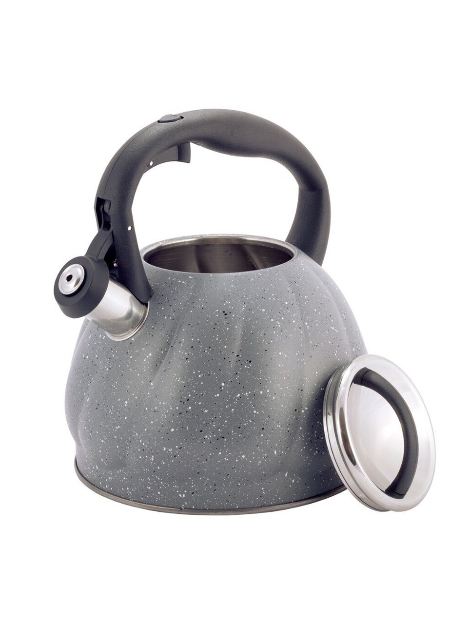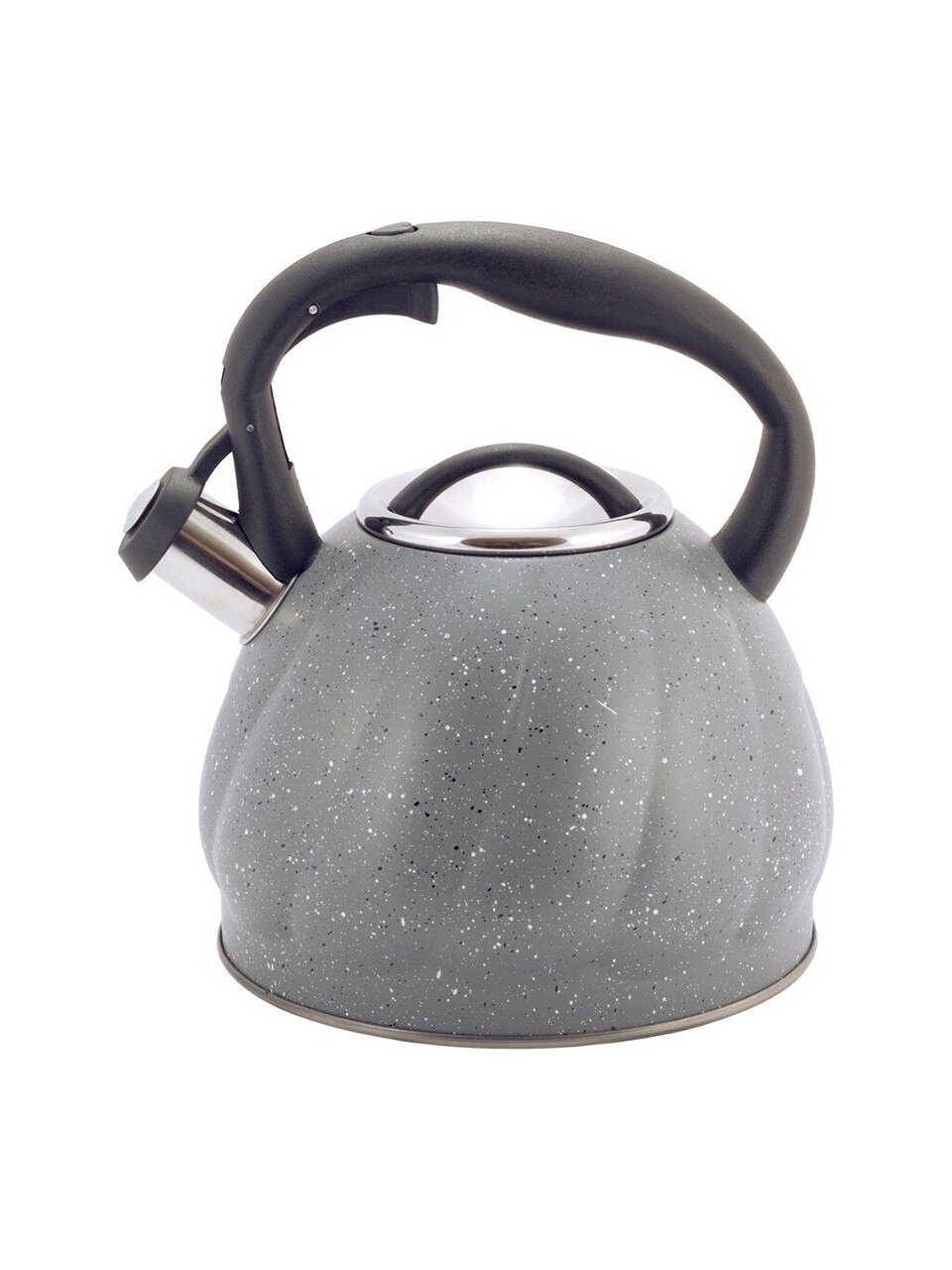 Чайник из нержавеющей стали Kamille 3 л со свистком: стильный серый мрамор, подходит для индукции, безопасная ручка — идеален для семьи и дачи.