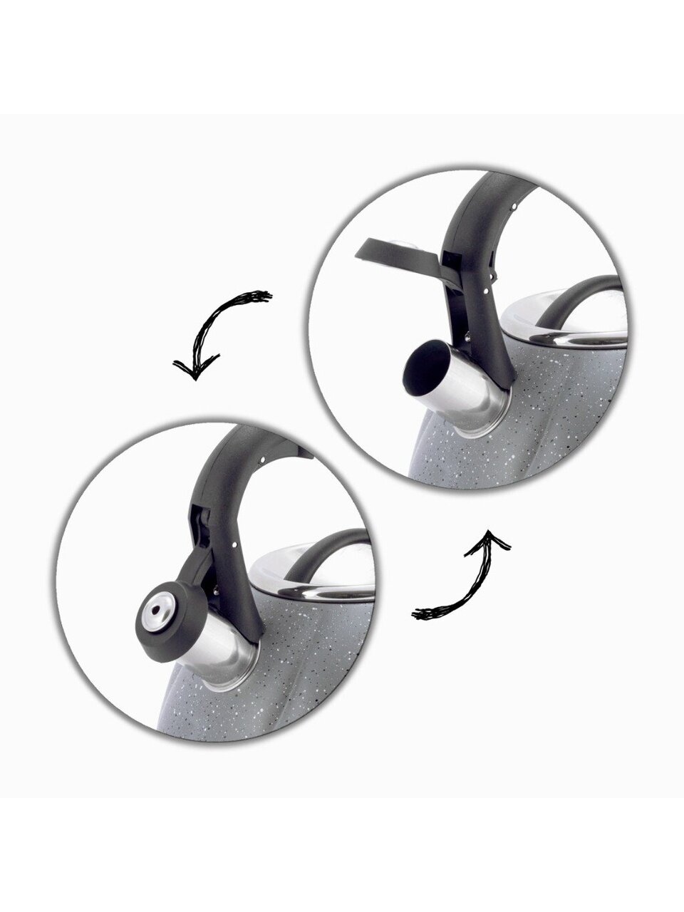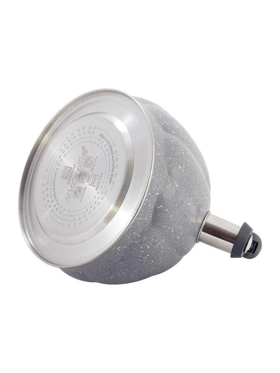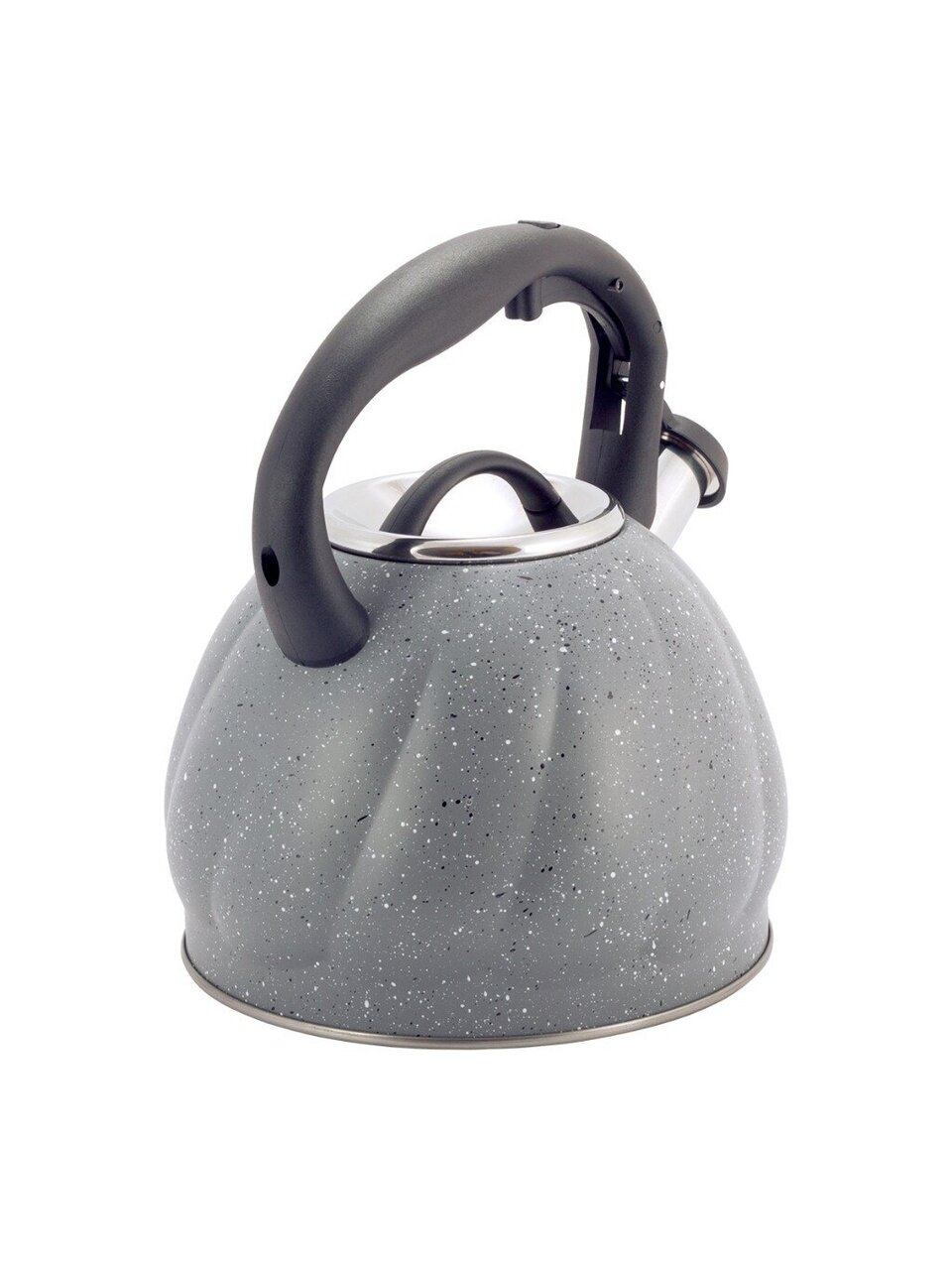 Чайник из нержавеющей стали Kamille 3 л со свистком: стильный серый мрамор, подходит для индукции, безопасная ручка — идеален для семьи и дачи.