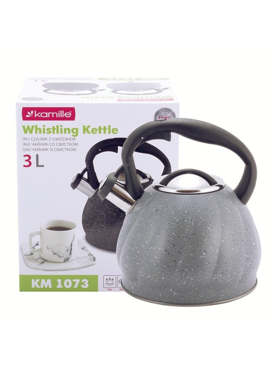 Вы можете приобрести «Чайник нержавеющая сталь, 3 л, со свистком, Kamille, индукция, серый мрамор, 1073GR» и другие товары в нашем интернет-магазине в Брянске по низким ценам и с бесплатным самовывозом.