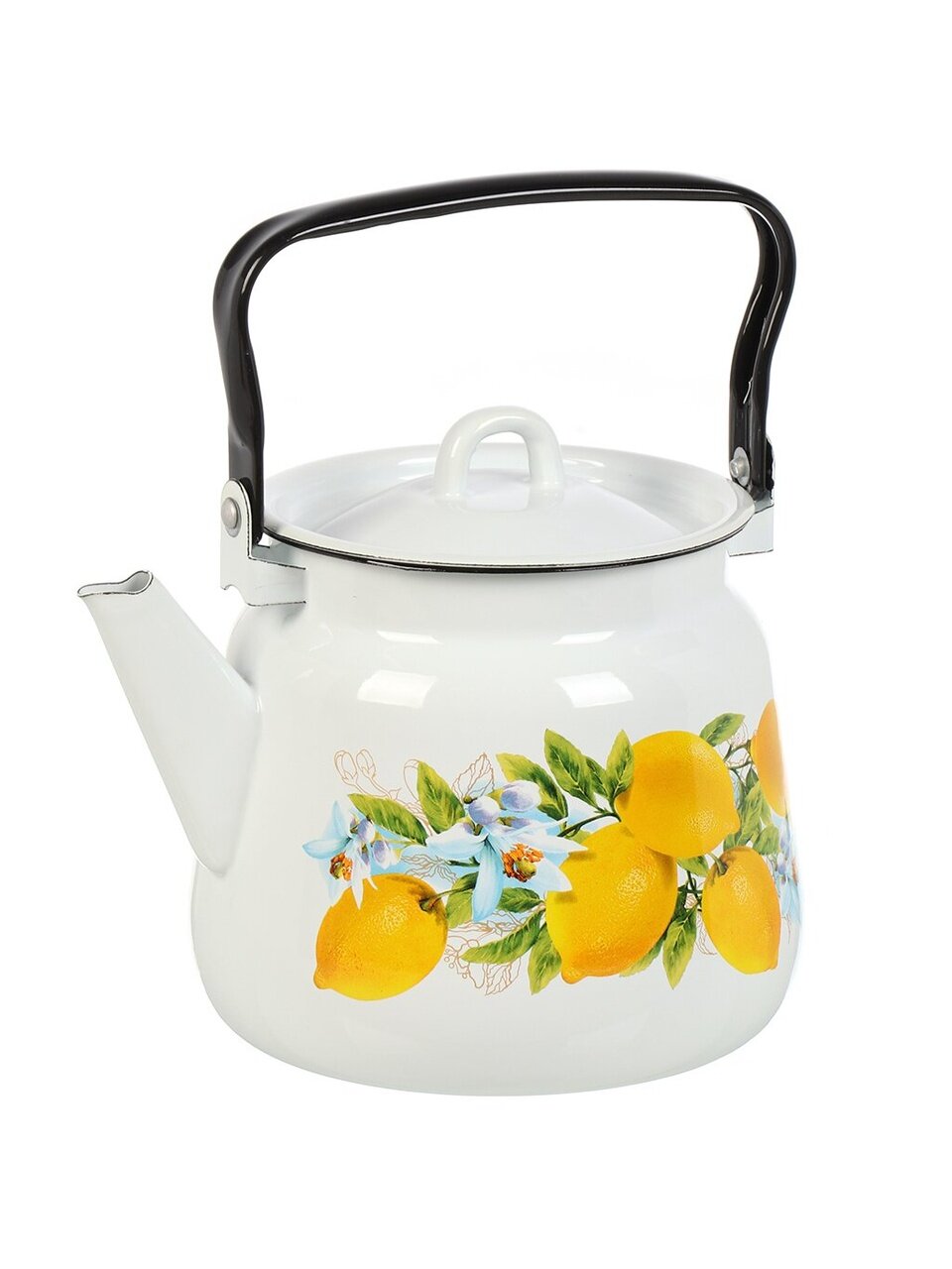 Чайник стальной 3.5 л с эмалированным покрытием "Лимоны" — оптимальное решение для дома и дачи: долговечность, яркий дизайн и универсальность по выгодной цене.