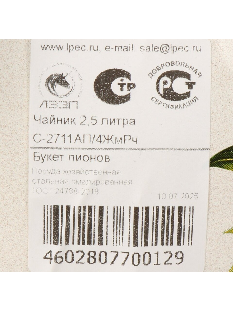 Чайник стальной с эмалированным покрытием ЛЗЭП "Букет пионов" — гармоничное сочетание элегантного дизайна, практичности и современных технологий для кухни. Яркий цветочный декор на белом фоне украсит интерьер и создаст уютную атмосферу, а классическая форма и удобная конструкция подойдут для ежедневного использования. Объем 2.5 литра позволяет быстро приготовить чай для семьи или гостей, а свисток своевременно оповестит о закипании воды. Чайник совместим с газовыми, электрическими, стеклокерамическими и индукционными плитами, что делает его универсальным выбором для любой кухни.