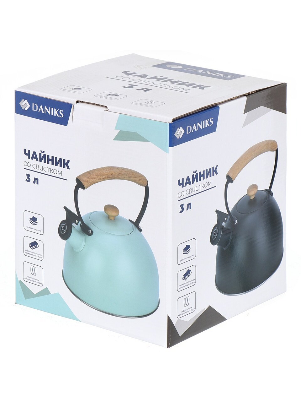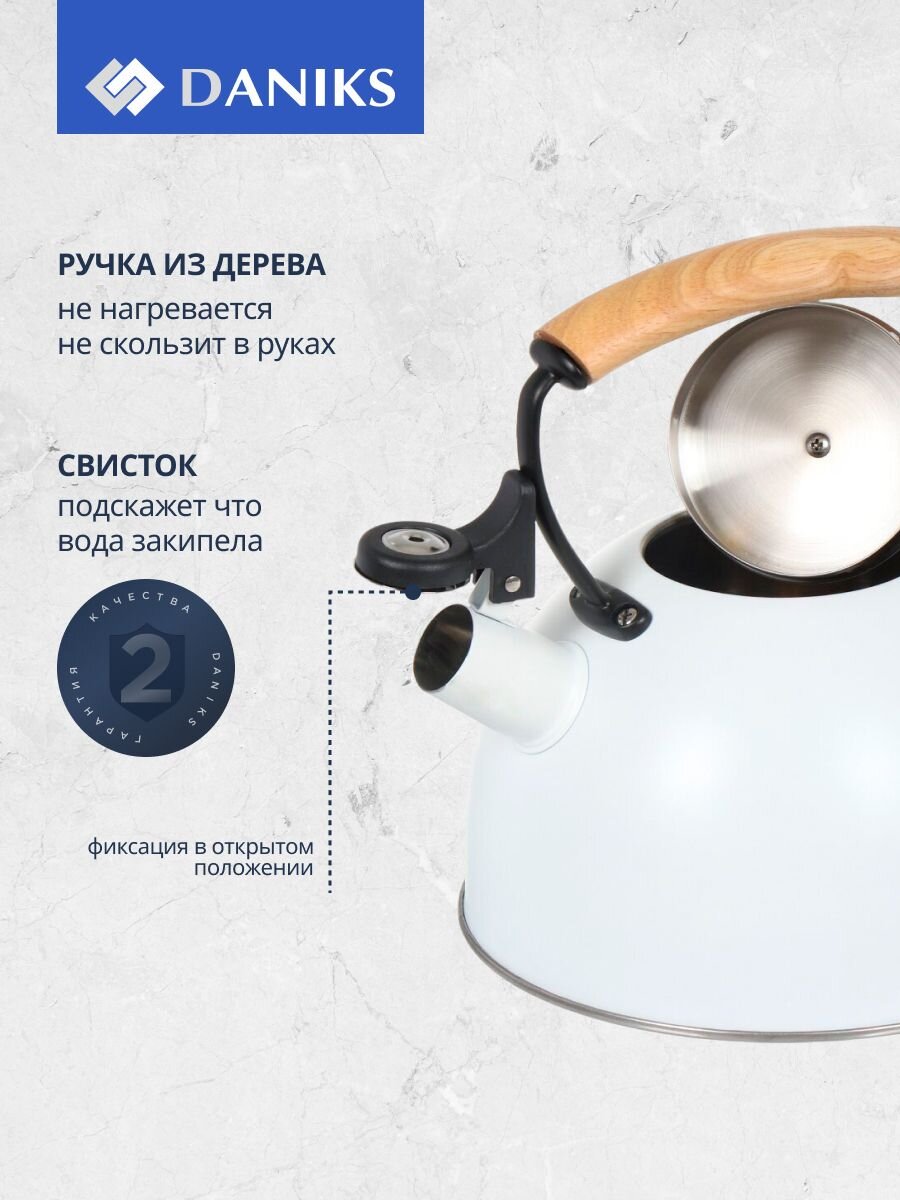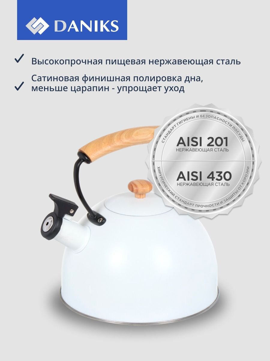 Чайник Daniks 2.5 л из нержавеющей стали с деревянной ручкой и свистком — надёжное решение для кухни и дачи: стиль, безопасность и универсальность по выгодной цене.