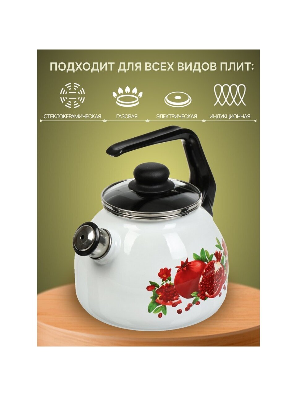 Чайник стальной эмалированный 3 л «Гранатовый сок» для индукции — безопасный выбор для дома и дачи, со свистком и термоизолированной ручкой. Подходит для всех плит!