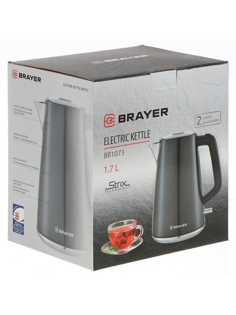 Электрический чайник BRAYER 1073BR Strix — быстрое и безопасное кипячение воды 1.7 л за 2 минуты. Стильный корпус, фильтр от накипи, гарантия 2 года.