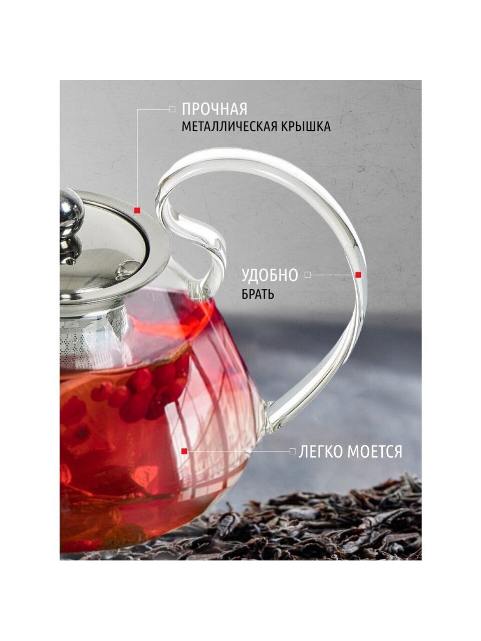 Чайник заварочный можно использовать для заваривания как чая, так и различных травяных настоев, а удобная крышка поддержит нужную температуру. Изделие изготовлено по современной технологии из высокопрочного стекла. Материал чайника отличается износоустойчивостью и легкостью, не впитывает запахи, прост в использовании и мойке. Сетчатый фильтр не позволит чаинкам или мелким частям отвара попасть в напиток. Прозрачный корпус позволяет контролировать процесс заваривания, чтобы получить напиток желаемой крепости.