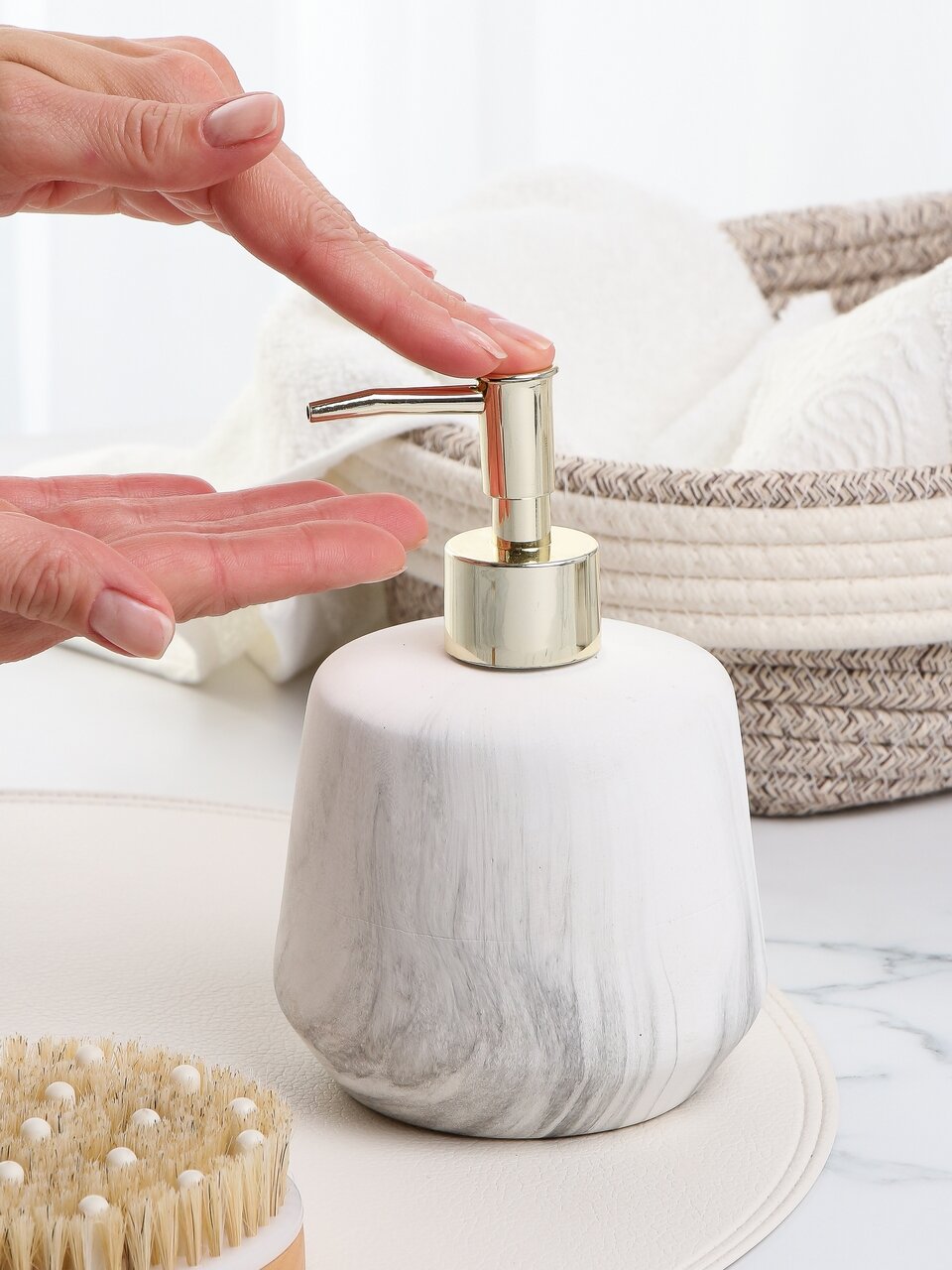 Дозатор для жидкого мыла из керамики с отделкой под серый мрамор — это не только функциональный аксессуар, но и элемент современного декора. Если вы ищете, какой дозатор выбрать для ванной или кухни, обратите внимание на керамику: она устойчива к влаге, не впитывает запахи и легко очищается. Благодаря универсальному размеру (11х11х16 см) дозатор удобно размещать даже на компактных раковинах или полках.