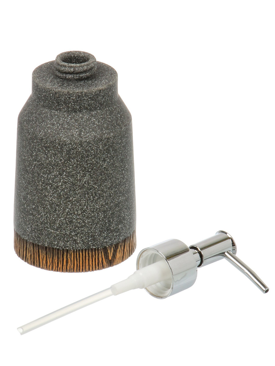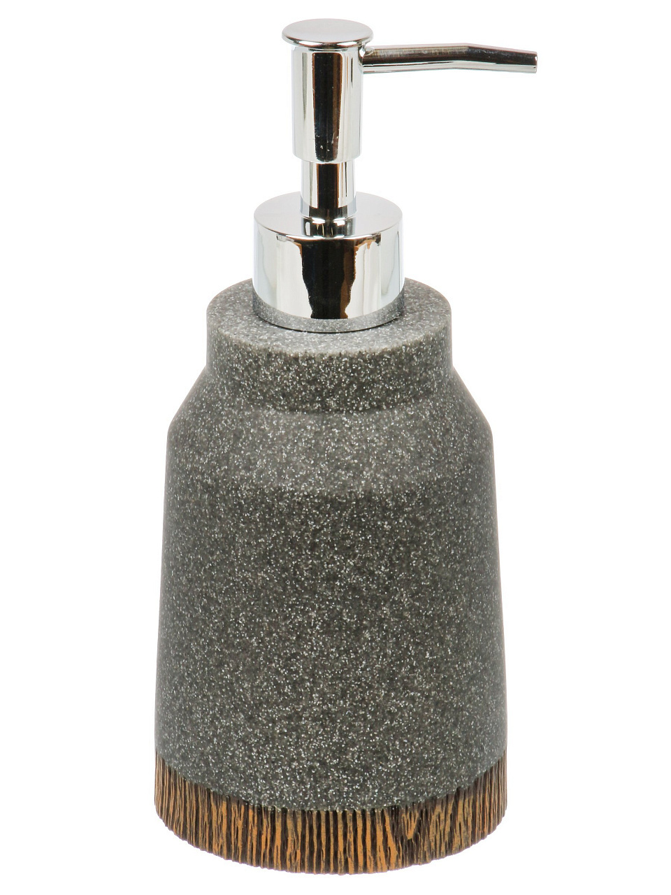 Дозатор для жидкого мыла Серый/дерево — стильный акцент для ванной, долговечный полистоун, универсальный размер 7.9x7.9x11.8/17.9 см, выгодная цена для дома и дачи.