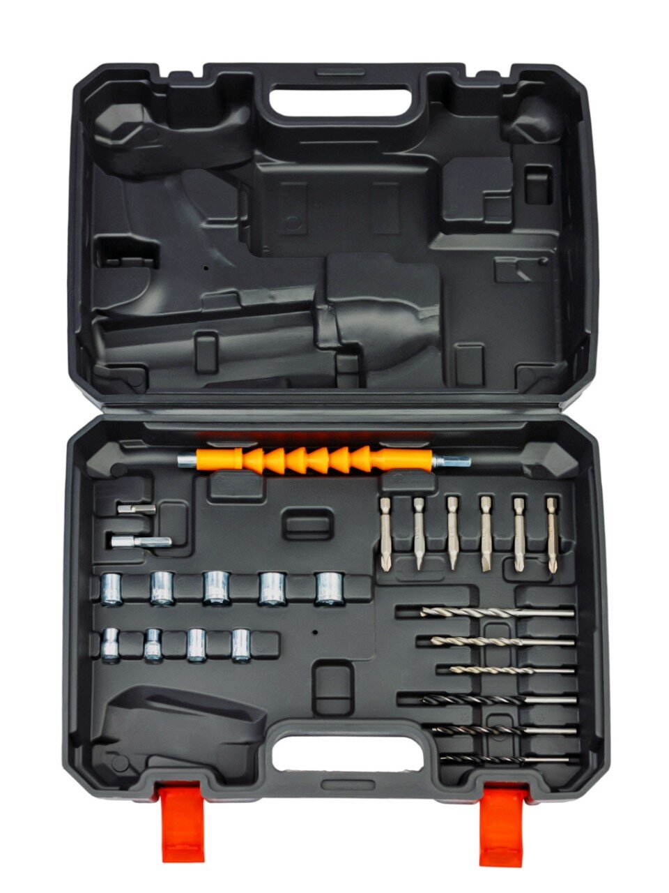 - Практичный кейс, зарядка в комплекте, прорезиненная рукоятка и LED-подсветка — удобно брать на дачу, для дома или в подарок.