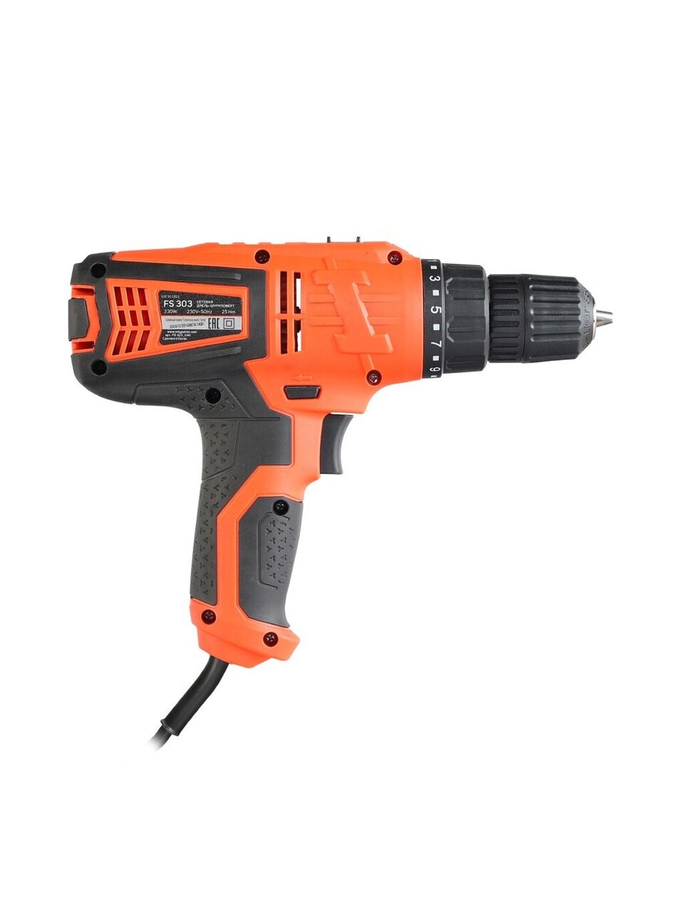 Мощная сетевая дрель-шуруповёрт FS 303 предназначена для длительной работы с крепежом и сверления отверстий. Шуруповёрт оснащён двухскоростным редуктором и муфтой с 20 регулировками крутящего момента, быстрозажимным патроном для простой смены оснастки. Для снижения утомляемости при длительной работе предусмотрена кнопка фиксации включенного состояния.