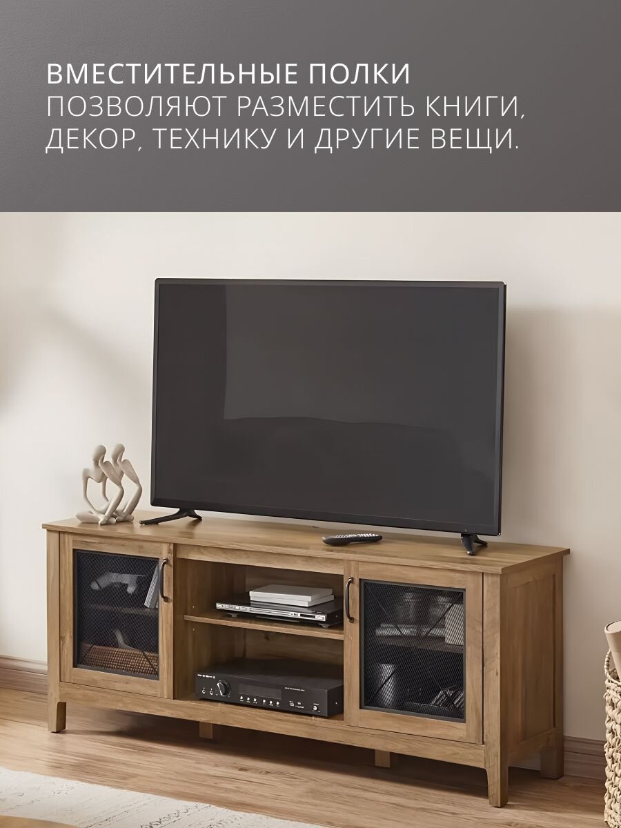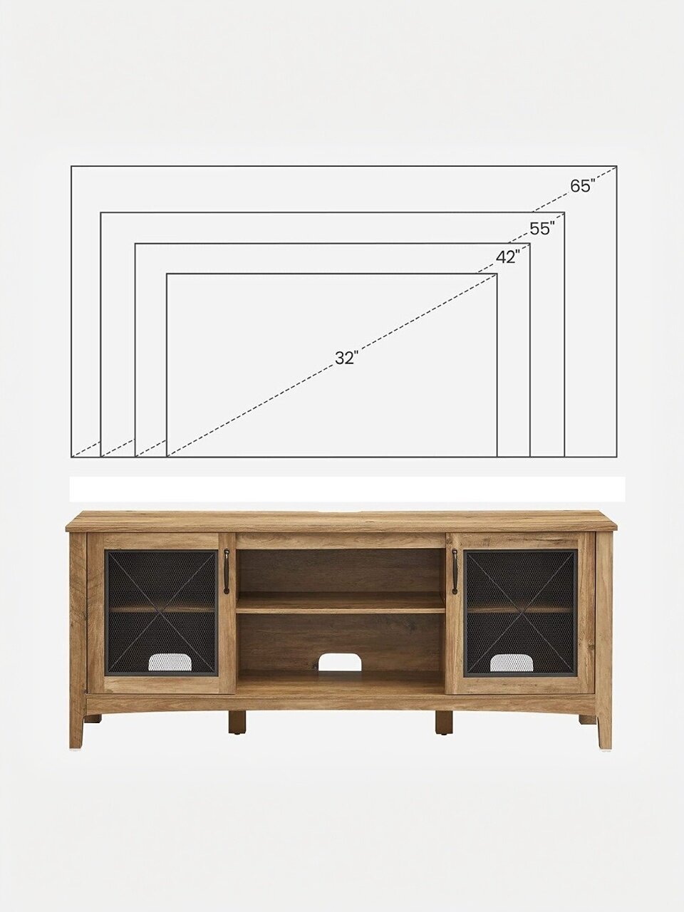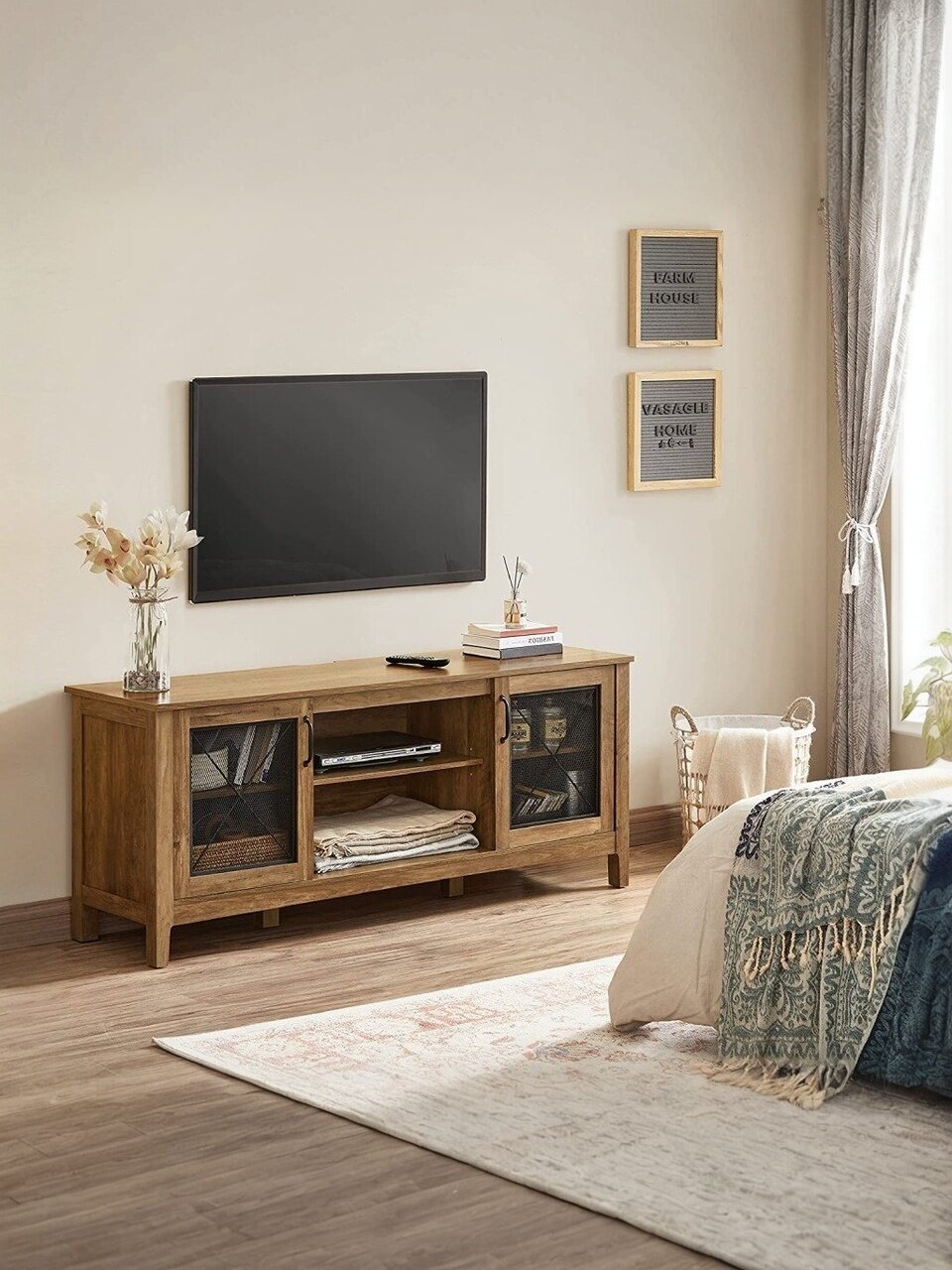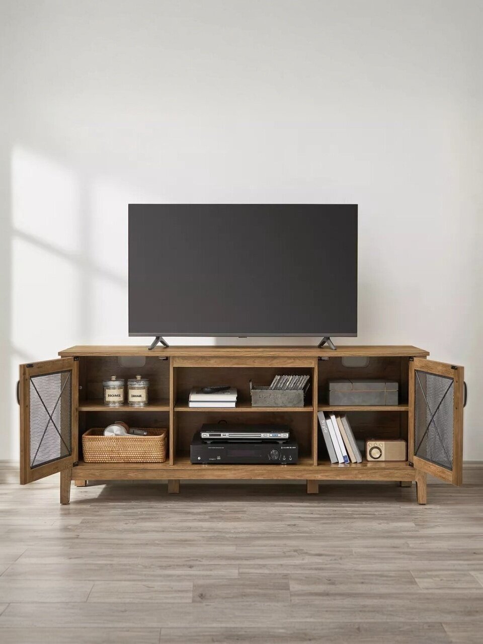 Классика и очарование: в этой тумбе для телевизора сочетаются деревянные детали и металлические сетчатые двери, чтобы привнести расслабляющую, уютную атмосферу фермерского дома в вашу гостиную.