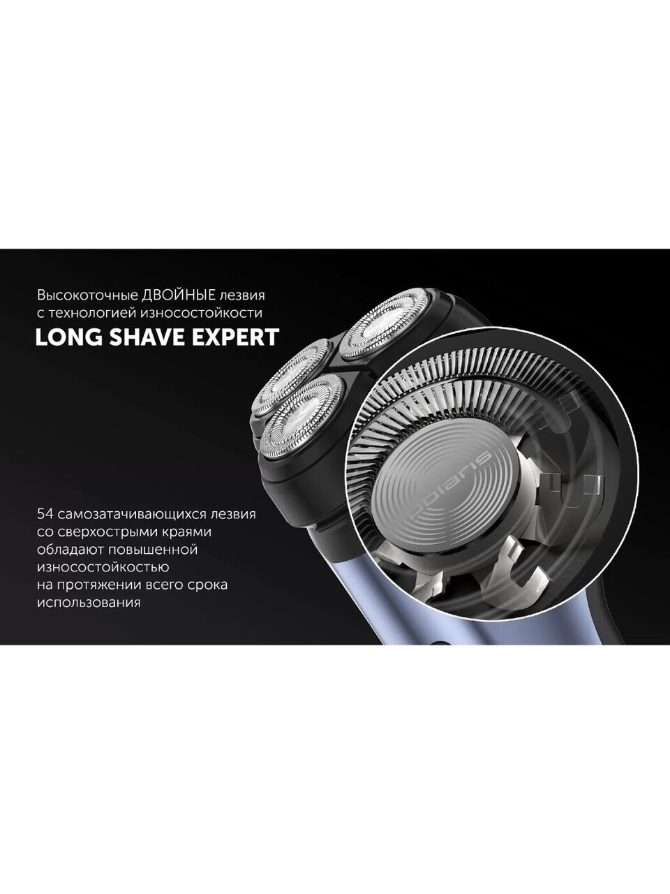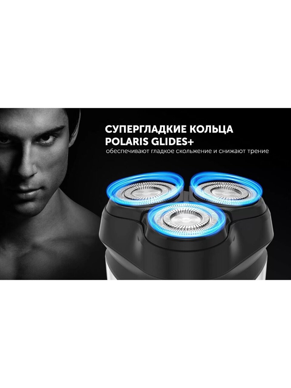 Модель Polaris оснащена 4D системой повторений контуров лица. Лезвия вращаются на 360° и позволяют сбривать даже самые короткие волосы в труднодоступных местах. Электробритва подходит для сухого и влажного бритья.