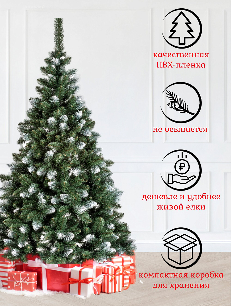 Елка новогодняя напольная 180 см Поля — эффект заснеженности, хвоя ПВХ, легко собирается, как настоящая сосна. Привнесите уют и атмосферу праздника домой.