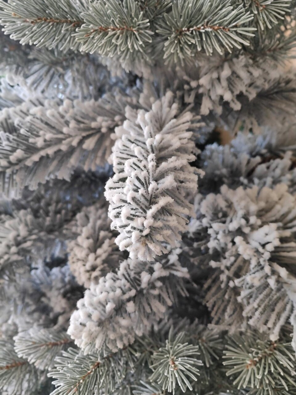 Елка новогодняя напольная 180 см Титус заснеженная — натуральная пушистость, безопасная хвоя ПВХ, эффект свежего снега для уюта и праздничного настроения дома.