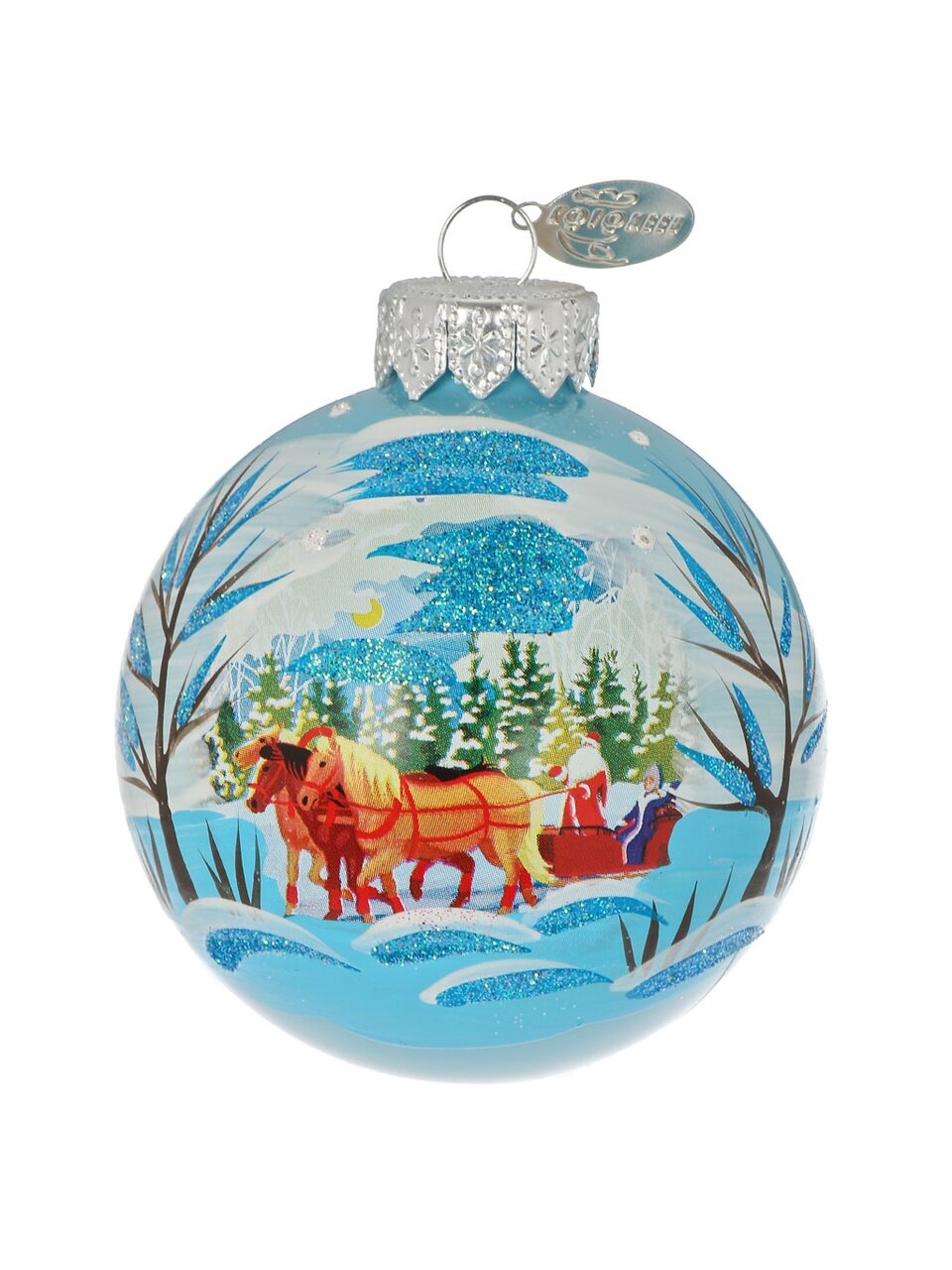 Елочный шар «Тройка быстрая» 6.5 см — эксклюзивная ручная роспись на стекле: создайте атмосферу уюта и волшебства, выбрав безопасное и долговечное украшение.