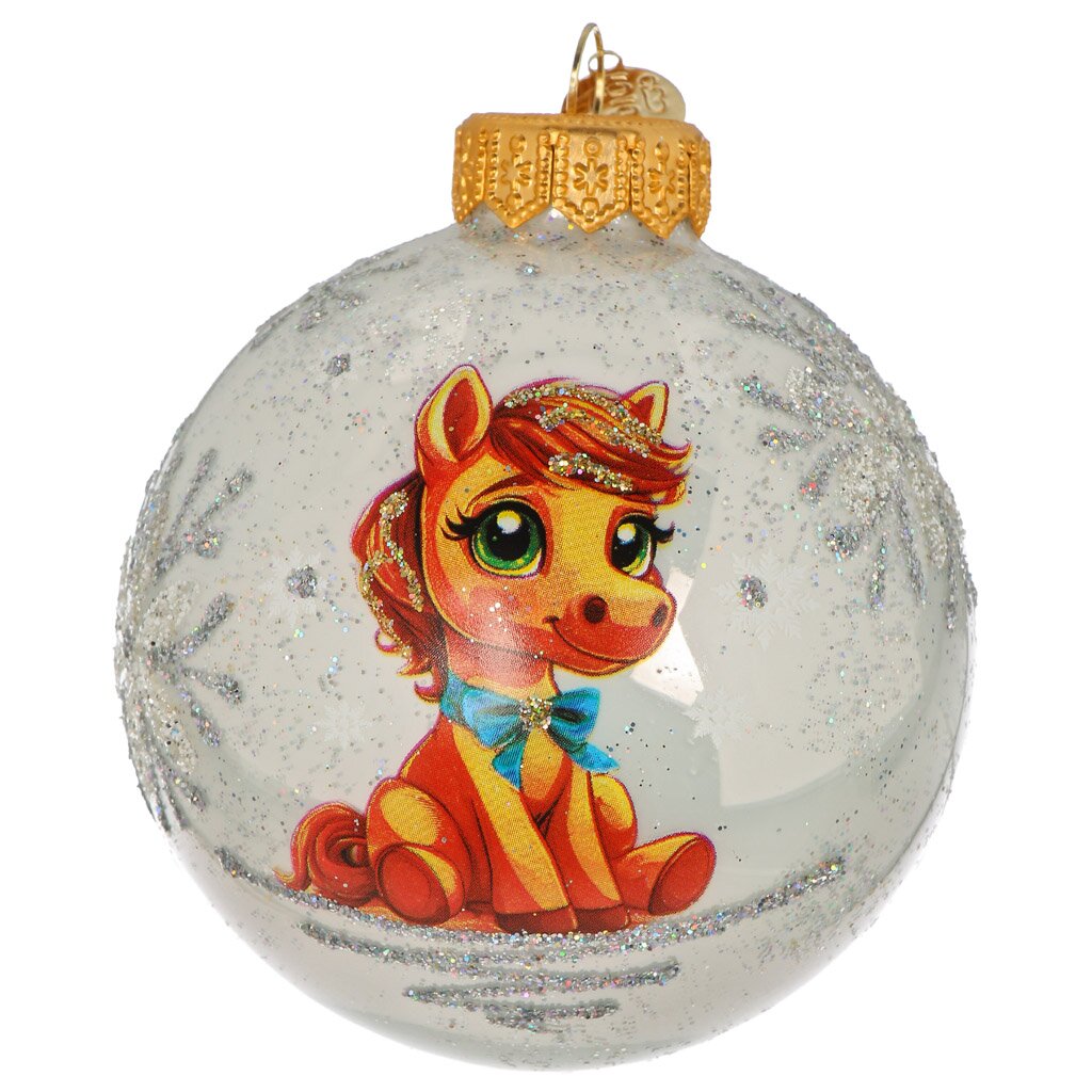 Елочный шар Пони-мальчик 8 см — эксклюзив из стекла с ручной росписью: стильный акцент для новогодней елки, уютного подарка или декора дома.