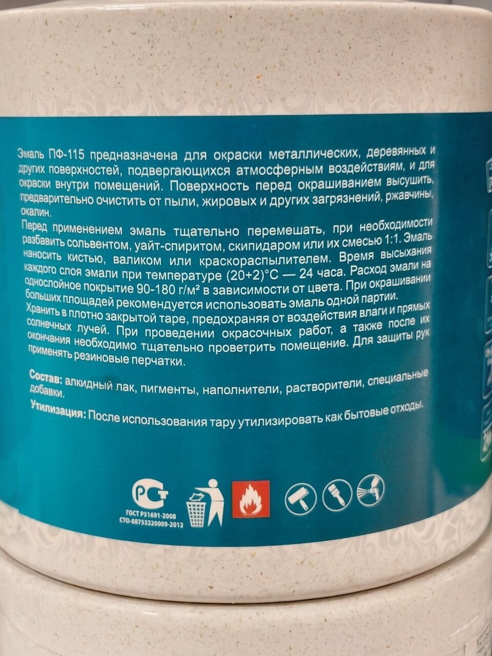 Эмаль ПФ-115 предназначена для окраски металлических, деревянных и других поверхностей, подвергающихся атмосферным воздействиям, и для окраски внутри помещений. Поверхность перед окрашиванием высушить, предварительно очистить от пыли, жировых и других загрязнений, ржавчины окалин.