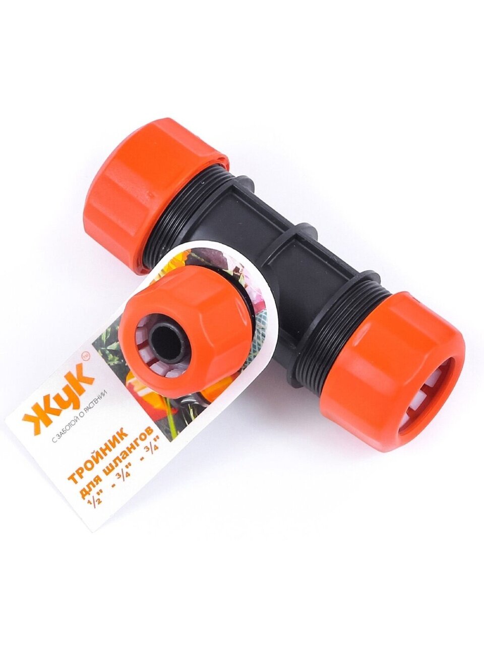Тройник цанговый "ЖУК" 3/4" - 3/4" - 1/2" — надежное решение для соединения труб различного диаметра. Изготовленный из прочного пластика, он обеспечивает долговечность и устойчивость к внешним воздействиям. Идеально подходит для использования в системах водоснабжения и ирригации.