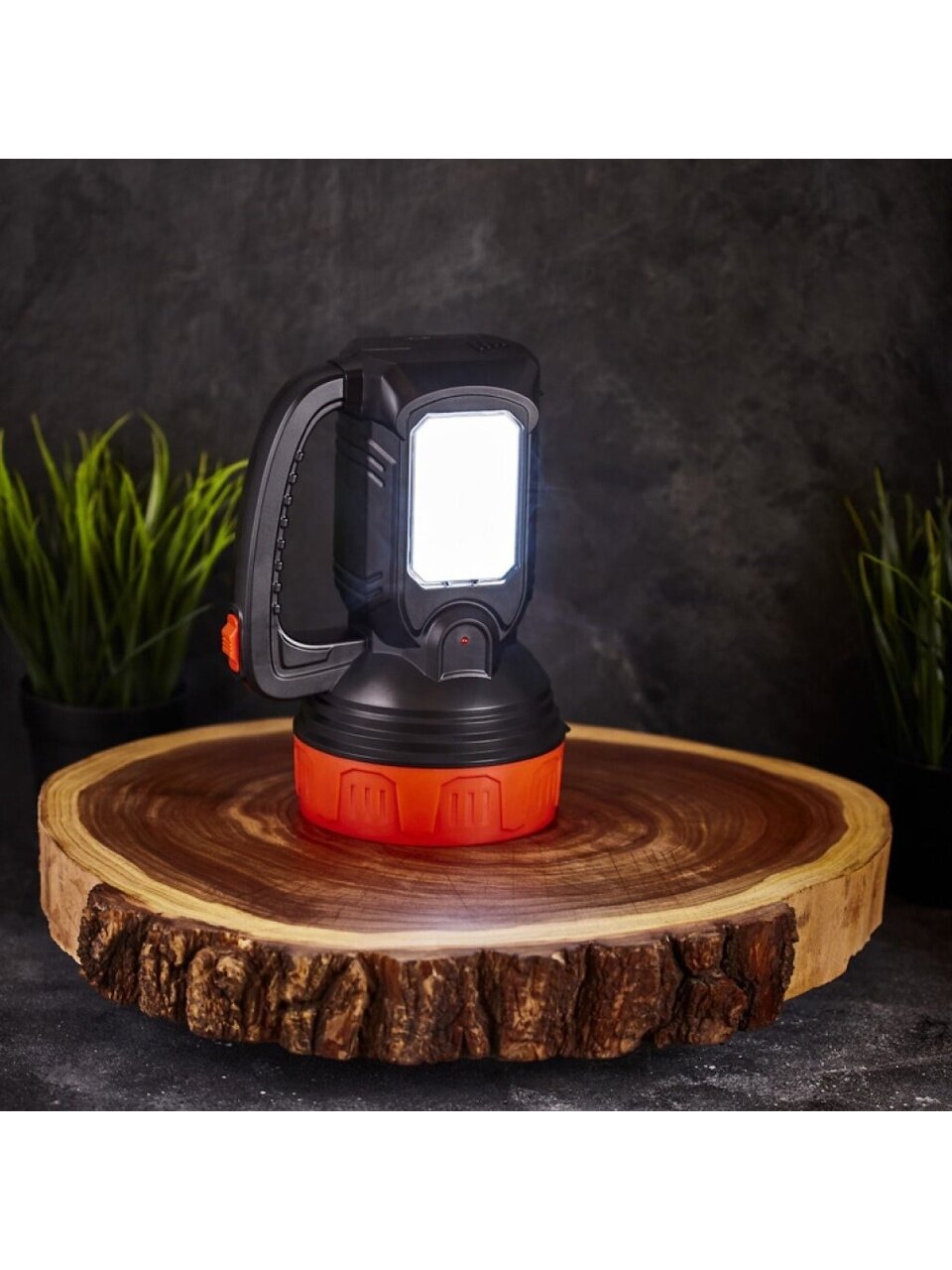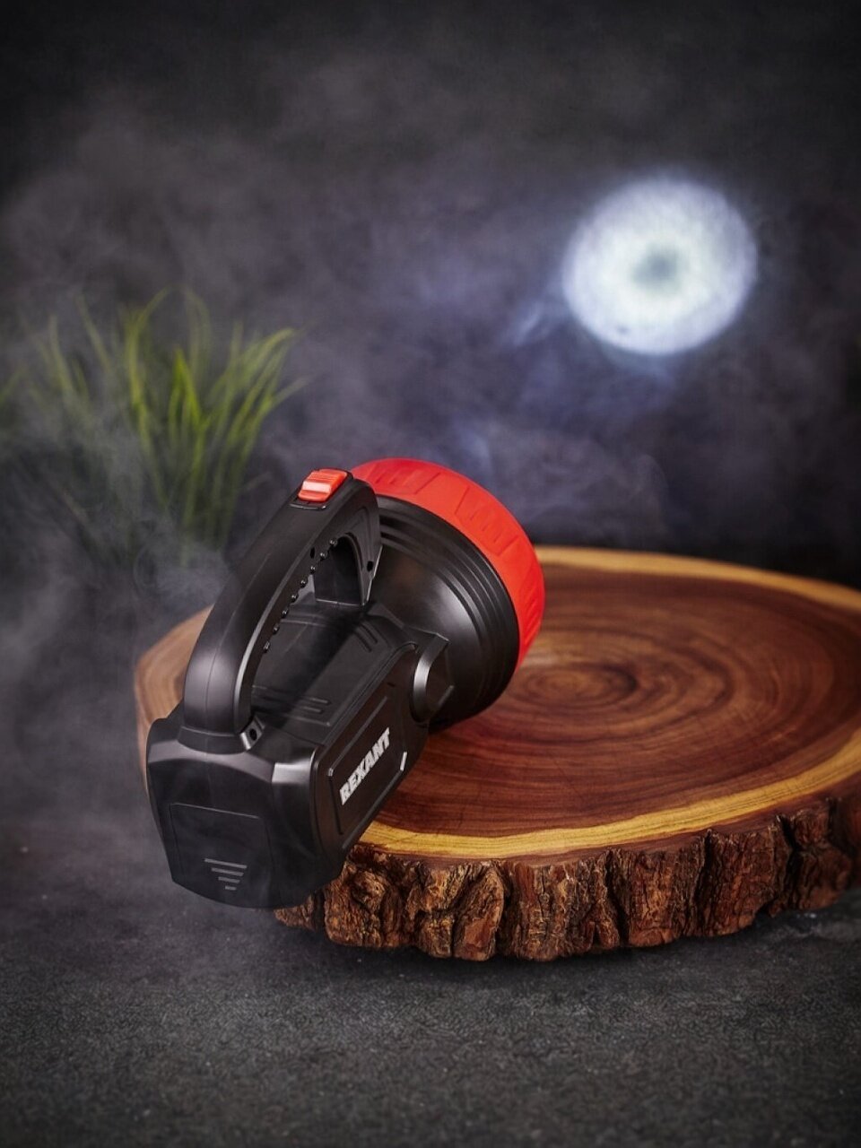 - Светодиодный аккумуляторный фонарь REXANT с боковым светом используется в качестве поискового и кемпингового фонаря с ярким основным и боковым светом;