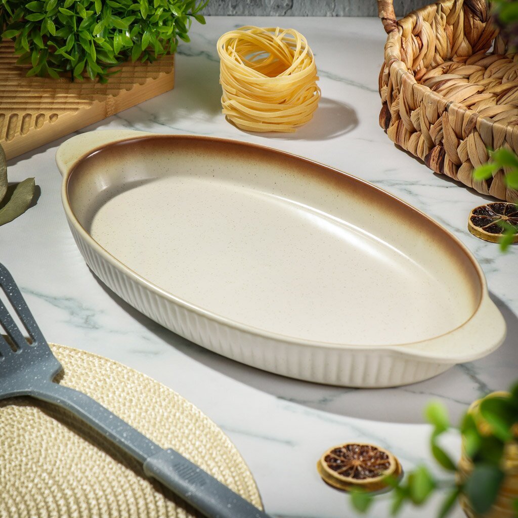Вы можете приобрести «Форма для выпечки керамика, 36х18.5х3.5 см, 1 л, овальная, бежевая, Daniks, Полдень, Y4-8729» и другие товары в нашем интернет-магазине в Борисоглебске по низким ценам и с бесплатным самовывозом.
