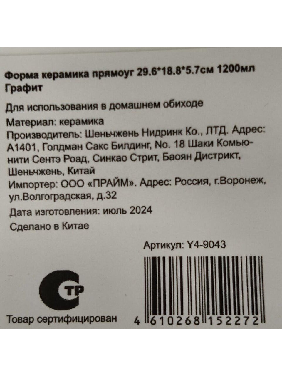 Вы можете приобрести «Форма для запекания керамика, 18.8х29.6х5.7 см, 1.2 л, овальная, Графит, Y4-9043» и другие товары в нашем интернет-магазине в Астрахани по низким ценам и с бесплатным самовывозом.