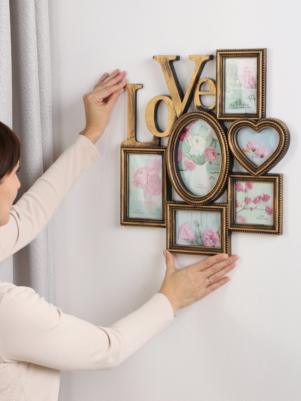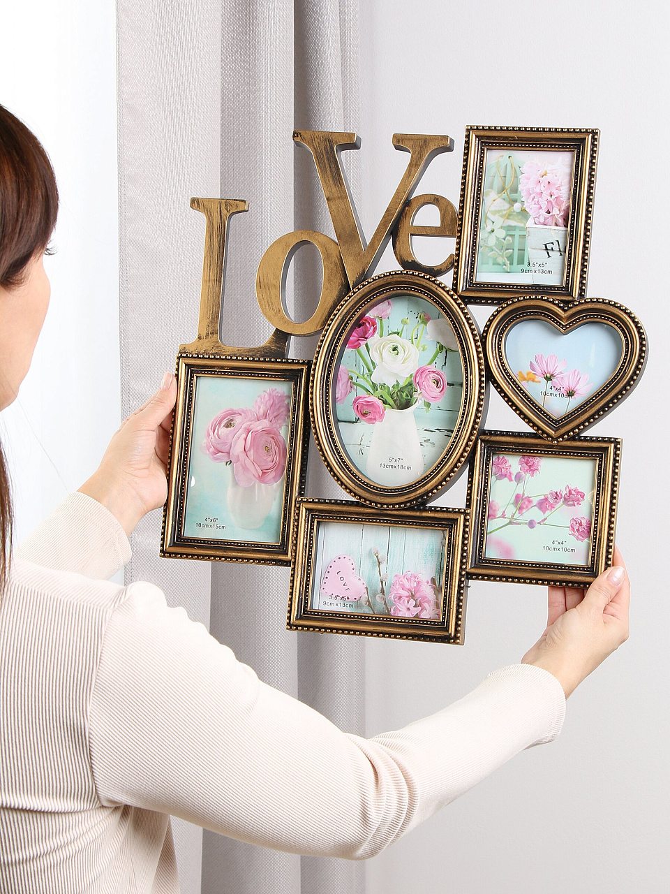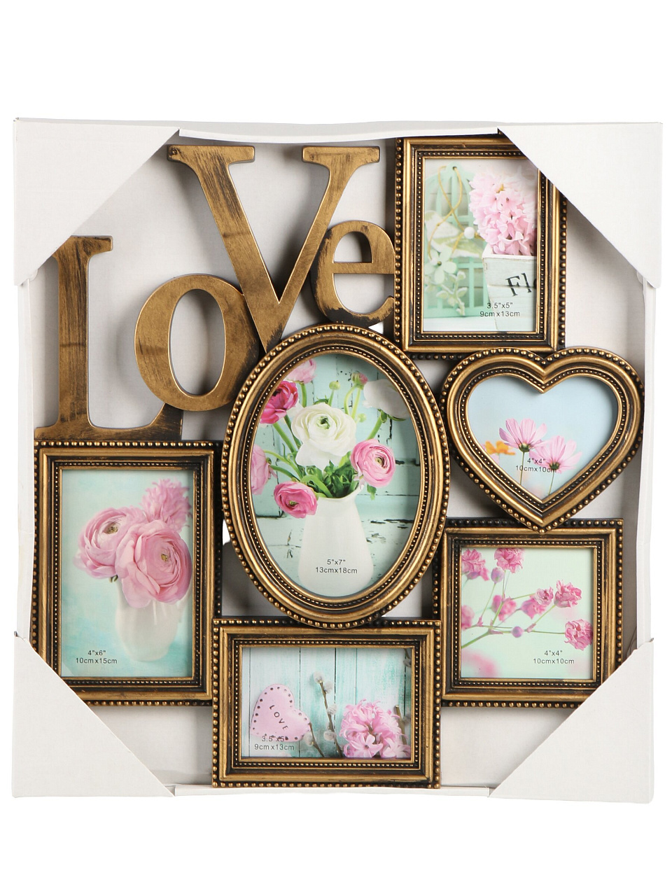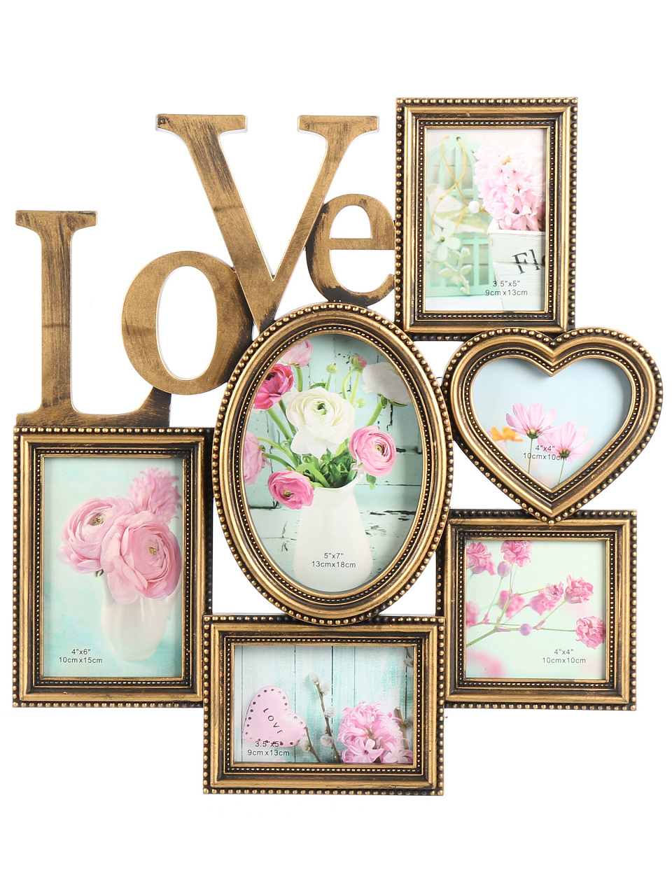 Фоторамка-коллаж на 6 фото 40х42 см: стильный акцент для дома, подарок с эмоциями и выгодой — пластик бронза, серия Любовь, Y4-11079