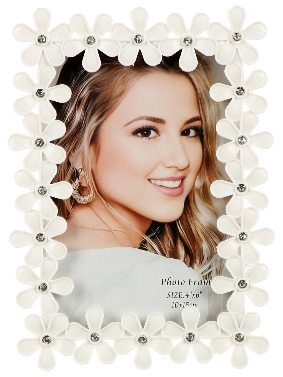 Белая фоторамка 10х15 см «Цветы» из пластика: стиль для дома и дачи, выгодная цена, идеальна для подарка и оформления уютного интерьера.