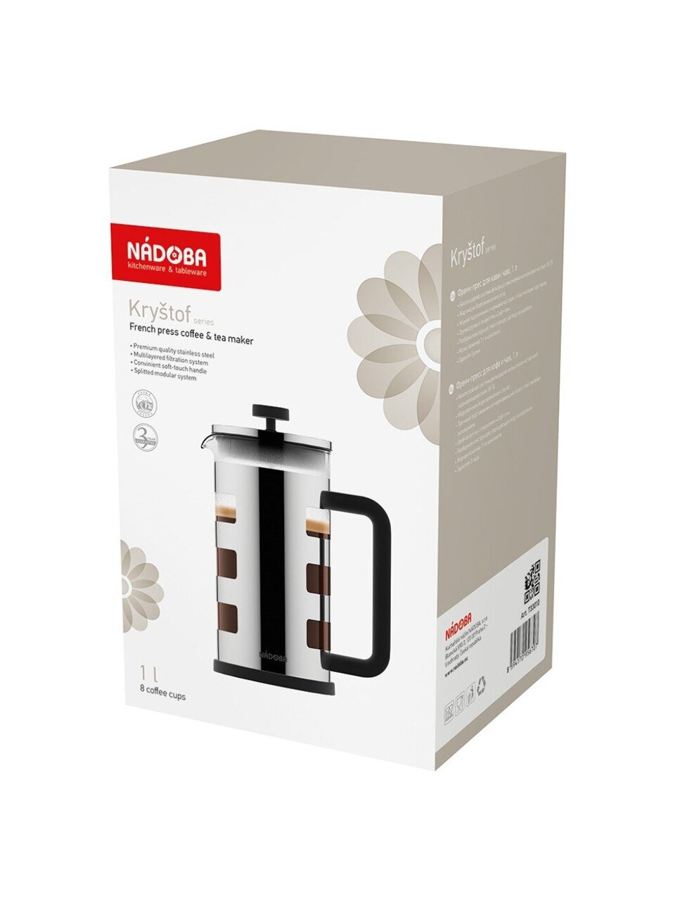 Френч-пресс Nadoba Krystof — отличный выбор для ценителей качественных и стильных вещей. Многослойная система фильтрации из нержавеющей стали 18/10 обеспечивает надёжность и долговечность, гарантируя чистоту и насыщенный вкус. Благодаря своей прочности, удобству использования и элегантному дизайну, он станет прекрасным дополнением к любой кухне и позволит вам наслаждаться ароматными напитками в уютной атмосфере.