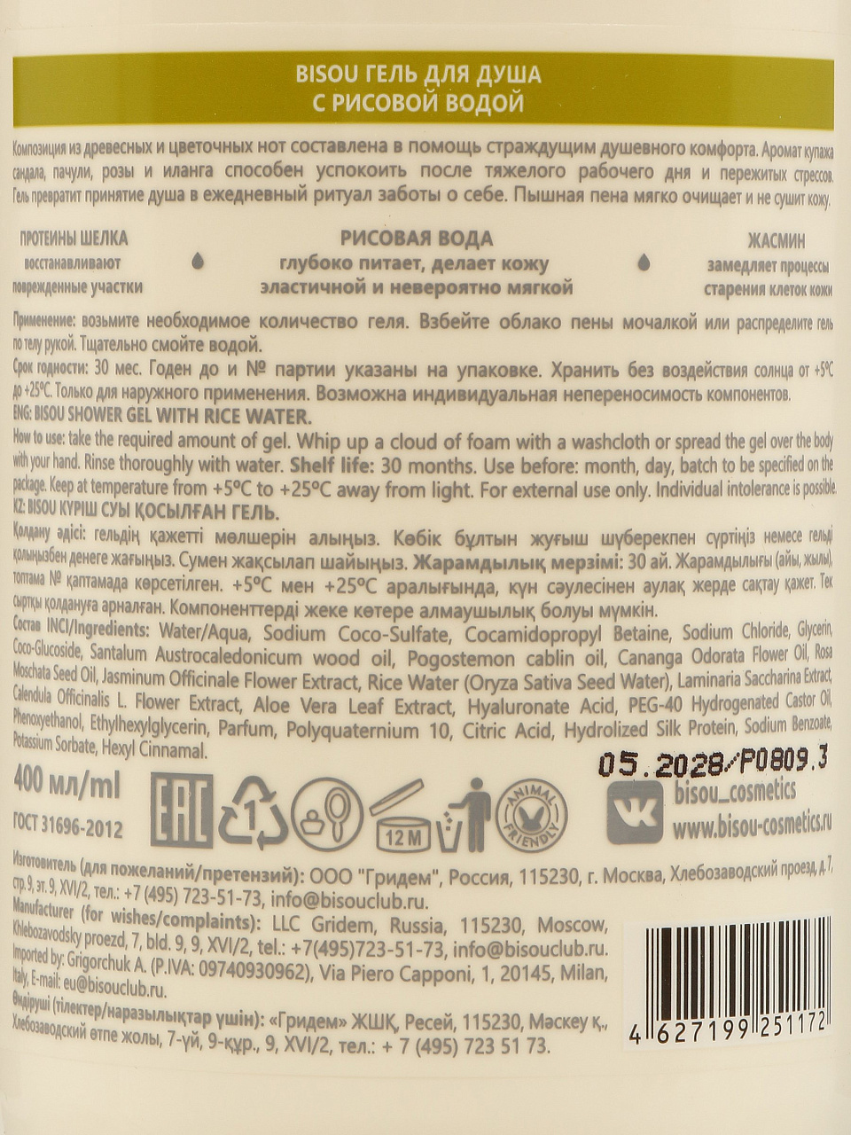 Как использовать гель для душа Bisou с рисовой водой?