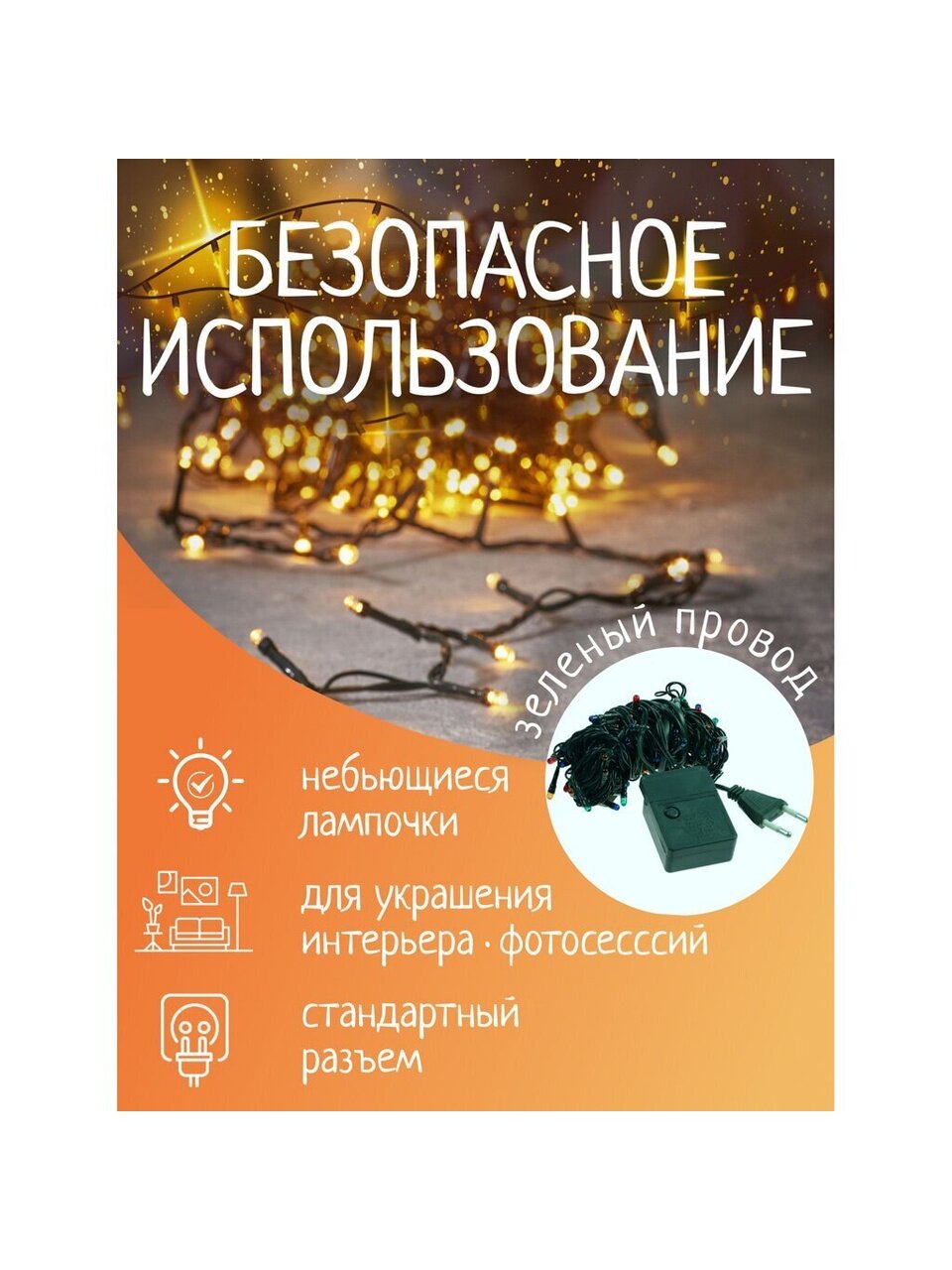 Вы можете приобрести «Гирлянда 100 ламп, 5 м, 8 режимов, теплый белый свет, зеленая, в помещении, сетевая, SY20L-01» и другие товары в нашем интернет-магазине в Орле по низким ценам и с бесплатным самовывозом.
