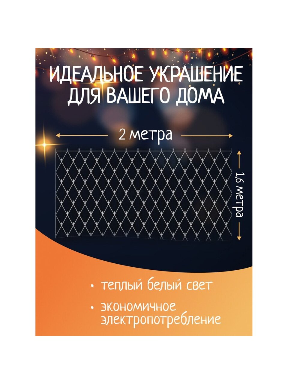 Вы можете приобрести «Гирлянда 160 ламп, 1.6х2 м, 8 режимов, Сеть, теплый белый свет, прозрачная, в помещении, сетевая» и другие товары в нашем интернет-магазине в Тамбове по низким ценам и с бесплатным самовывозом.