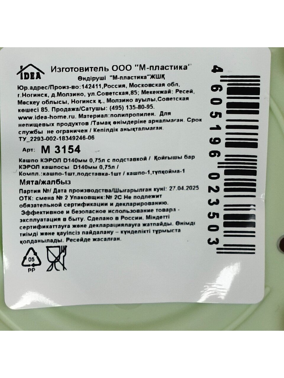 Вы можете приобрести «Горшок для цветов пластик, 0.75 л, 14х10 см, мятный, Idea, Кэрол, М 3154» и другие товары в нашем интернет-магазине в Курске по низким ценам и с бесплатным самовывозом.