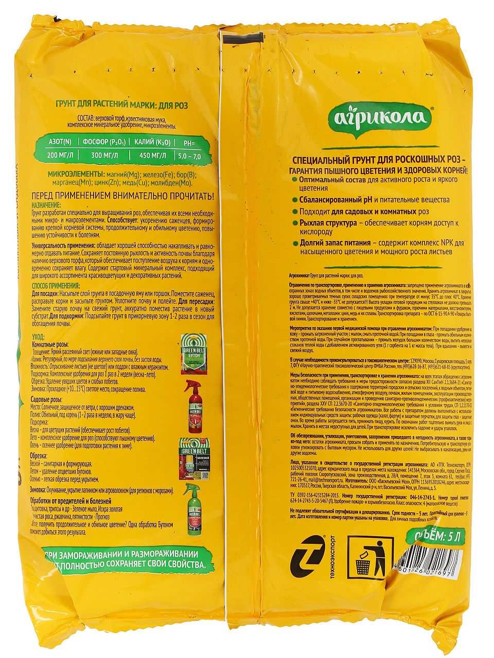 Грунт для роз, 5 л, Агрикола — идеальный выбор для пышного цветения и здоровых корней ваших роз. Подходит для дачи и дома, оптимальный состав для быстрого роста.