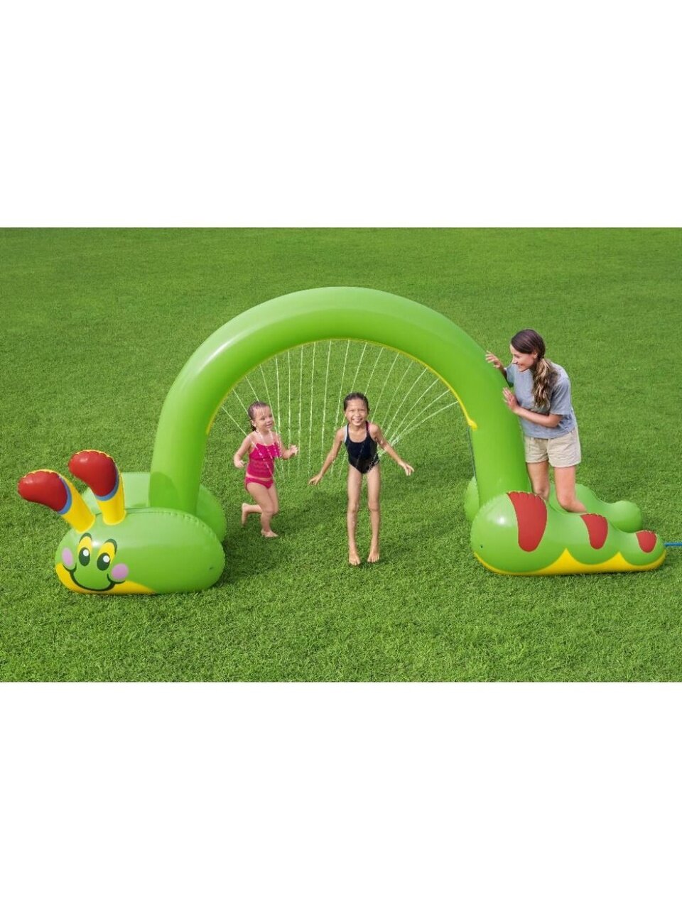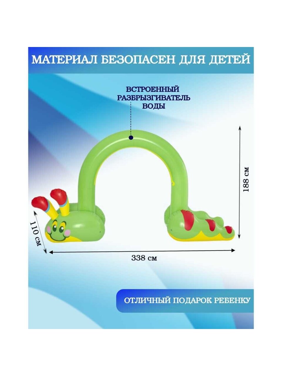 Надувная арка, выполненная в виде смешливой зеленой гусеницы, добавит прелести любому солнечному дню. Просто надуйте ее и установите в уютном местечке с зеленой травой как эффектную фигуру для декора дачи, а как только выдастся удобная минута - подключайте Гусеничку к садовому шлангу и устраивайте личный грибной дождь!