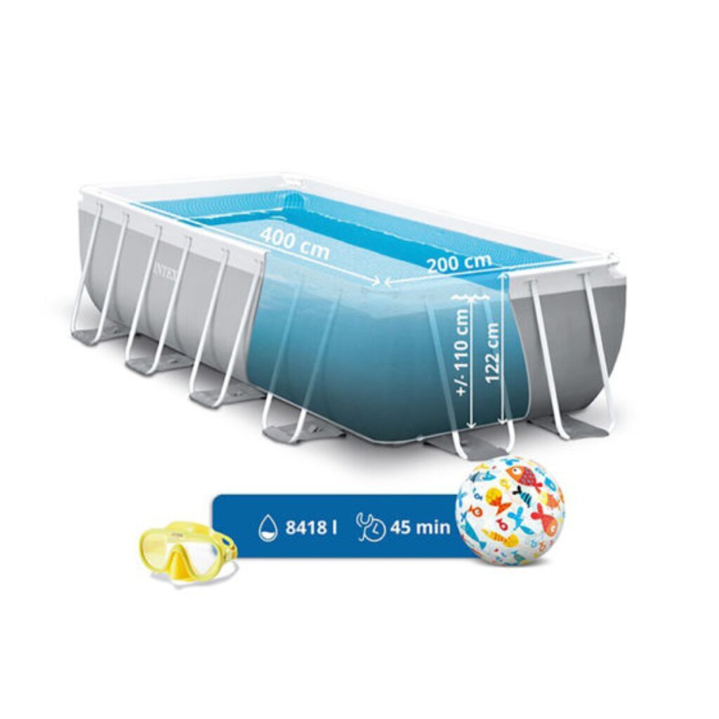 Каркасный бассейн для дачи Intex Prism Frame размером 400х200х122 см прекрасно впишется в любой ландшафт благодаря своему стильному серому цвету. Прямоугольная форма и прочная конструкция из стали обеспечивают надежность и долговечность эксплуатации. Чаша бассейна, выполненная из трехслойного ПВХ, устойчива к повреждениям и оснащена сливным клапаном для удобства использования.