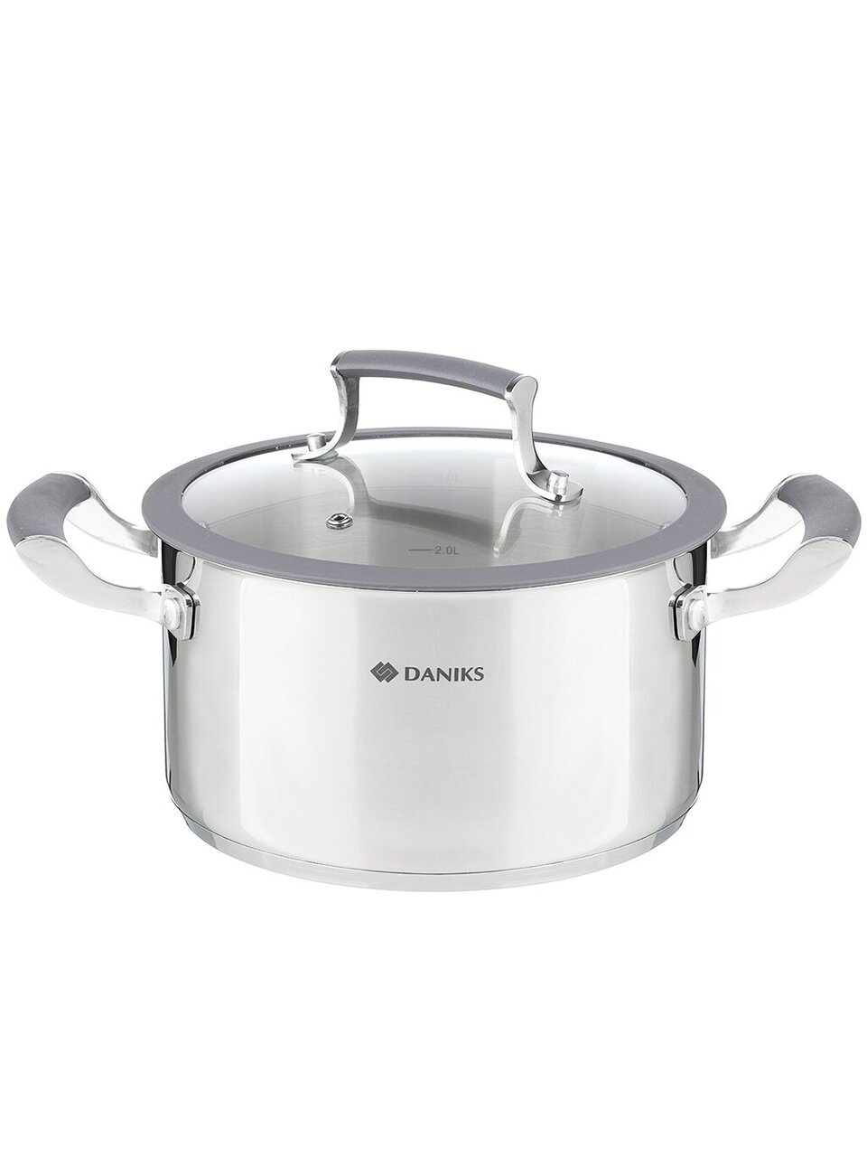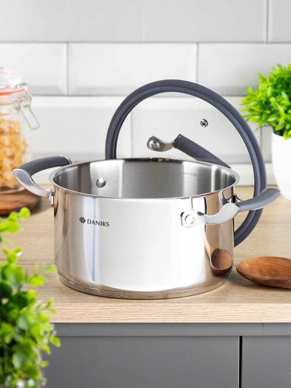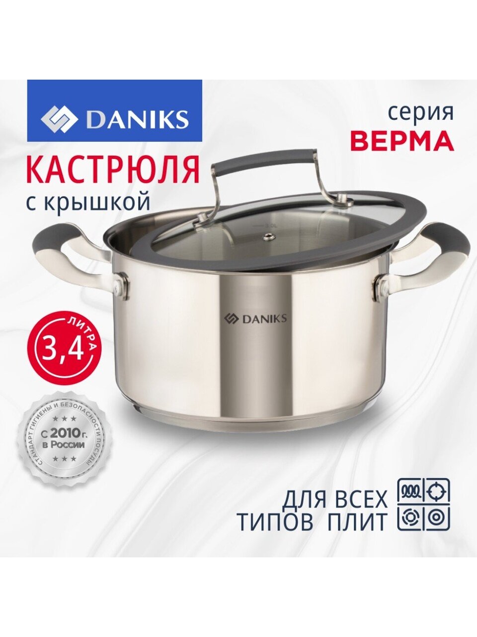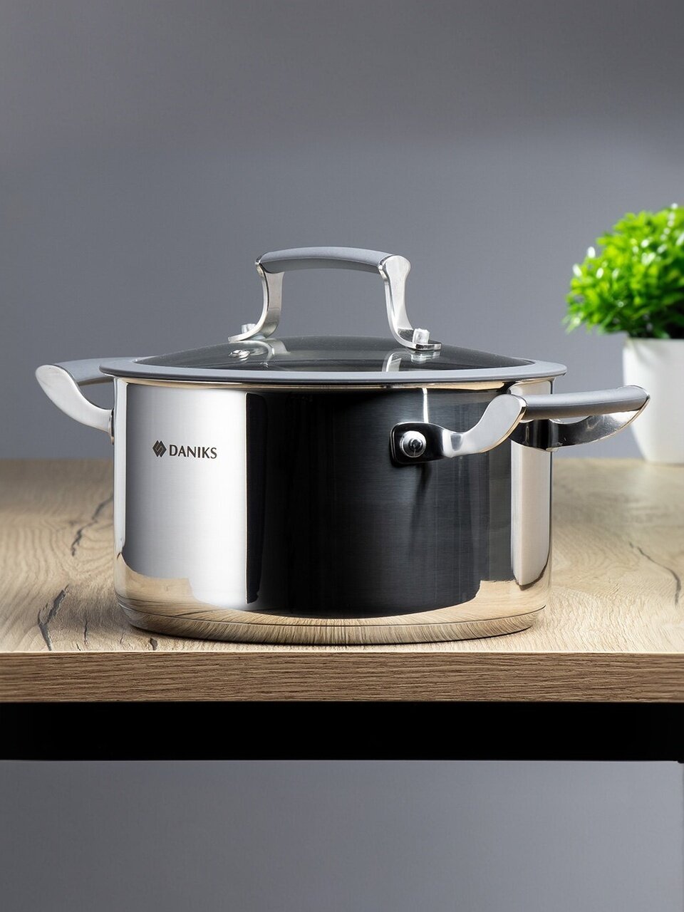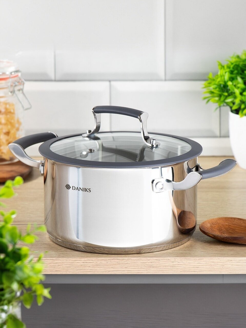 Кастрюля Daniks Верма 3.4 л из нержавеющей стали с капсульным дном и стеклянной крышкой — оптимальный выбор для дома и дачи, подходит для всех типов плит.