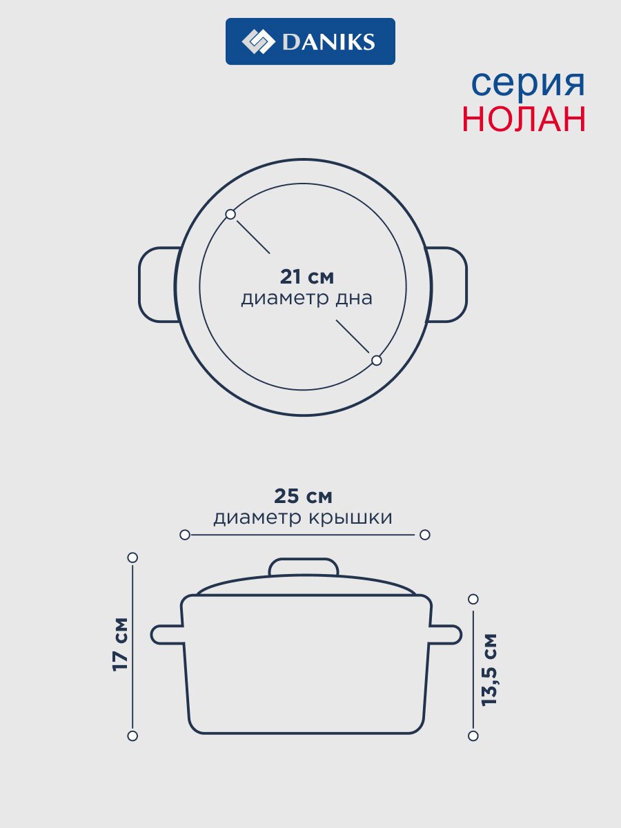 Какой объём и размеры у кастрюли Daniks Нолан?