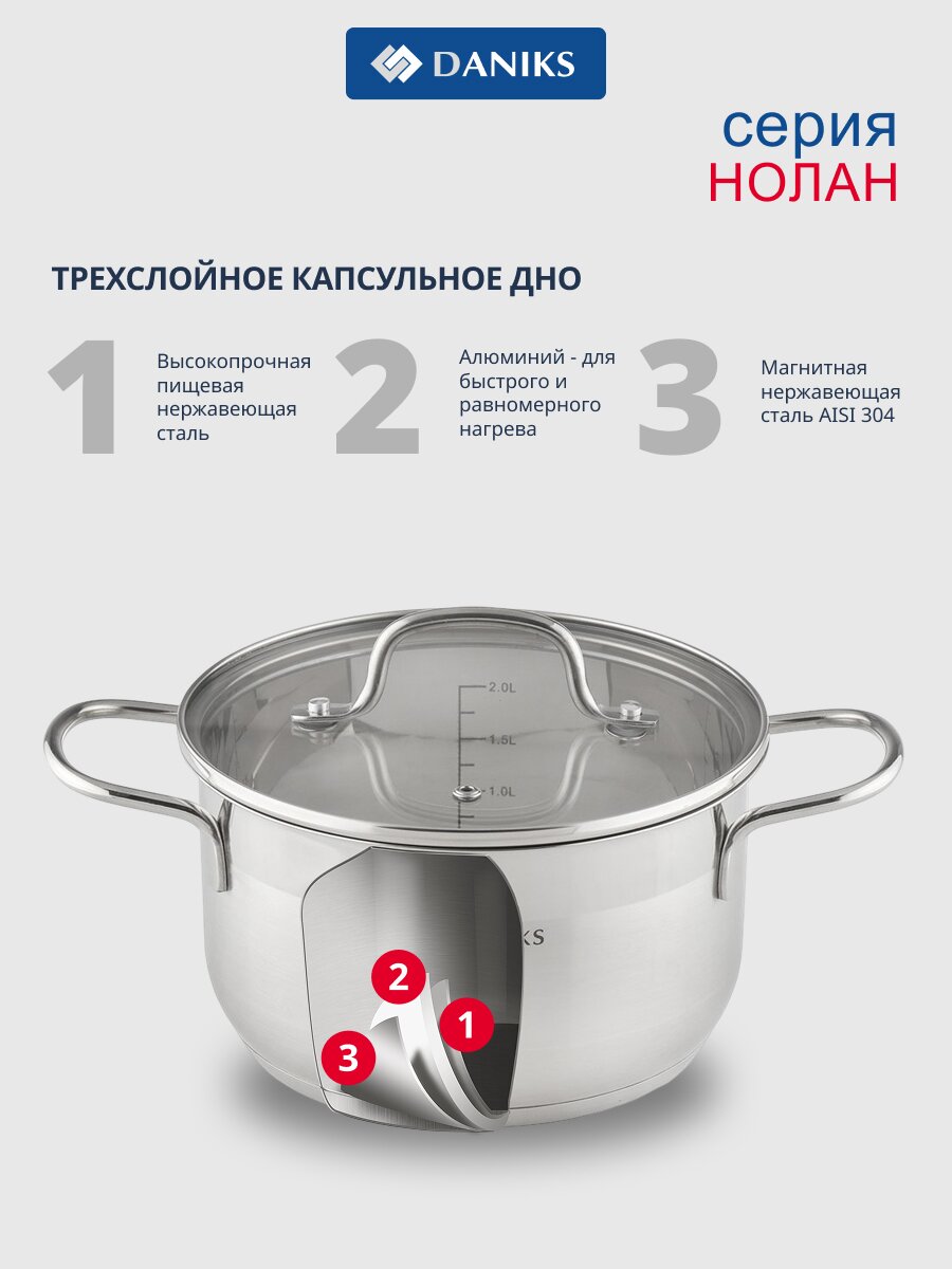 Кастрюля Daniks Нолан 6.1 л из нержавеющей стали: идеальный выбор для семьи и дачи — долговечность, универсальность, выгодная цена.