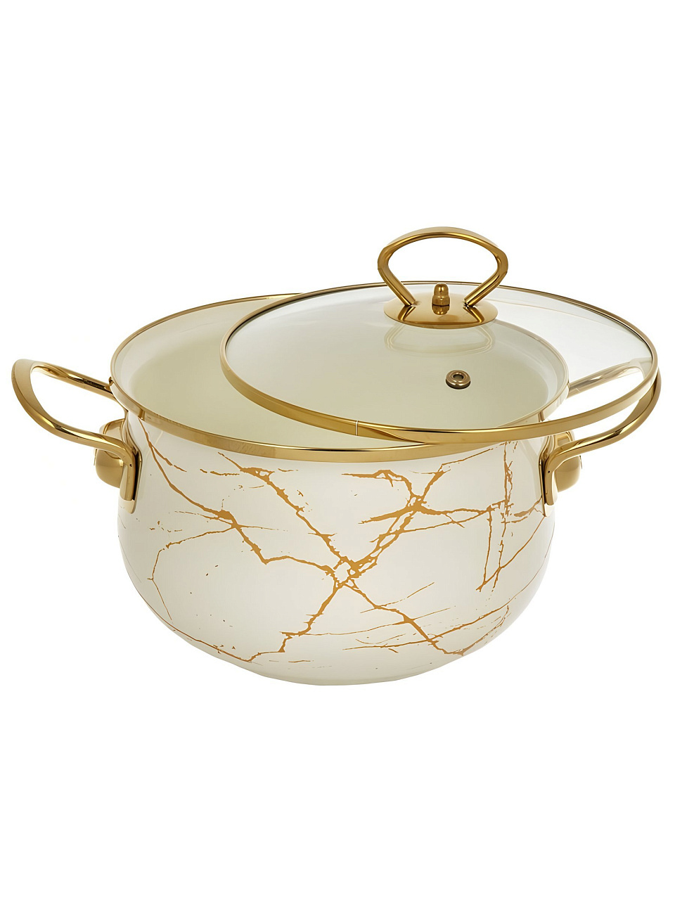 Кастрюля Daniks Белый мрамор 2.7 л: стиль и надежность для вашей кухни — подходит для индукционных плит, стеклянная крышка, оптимальный объем для семьи.