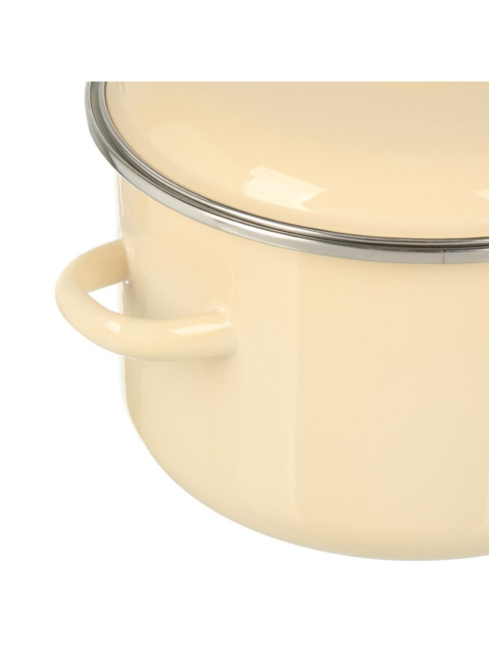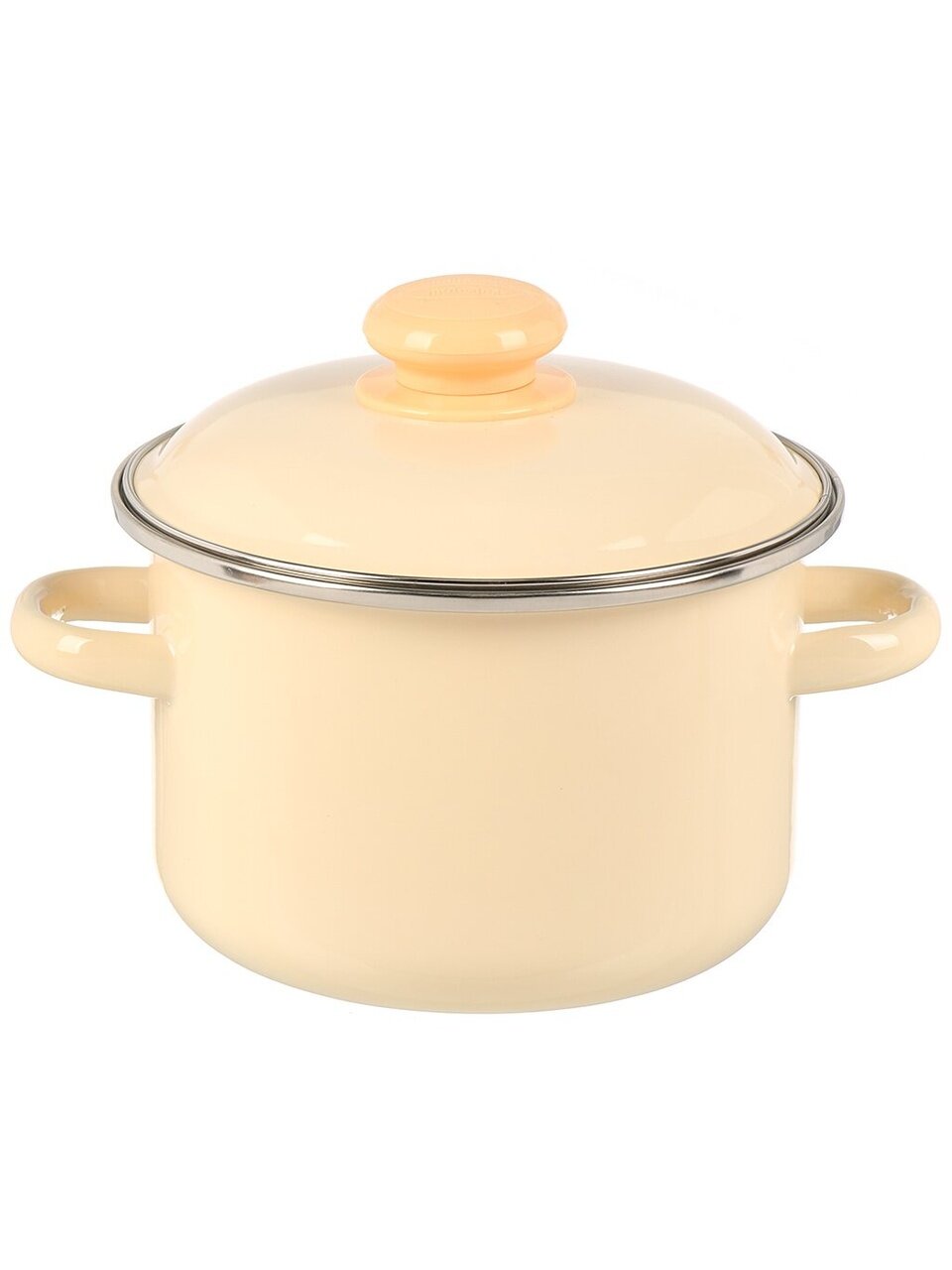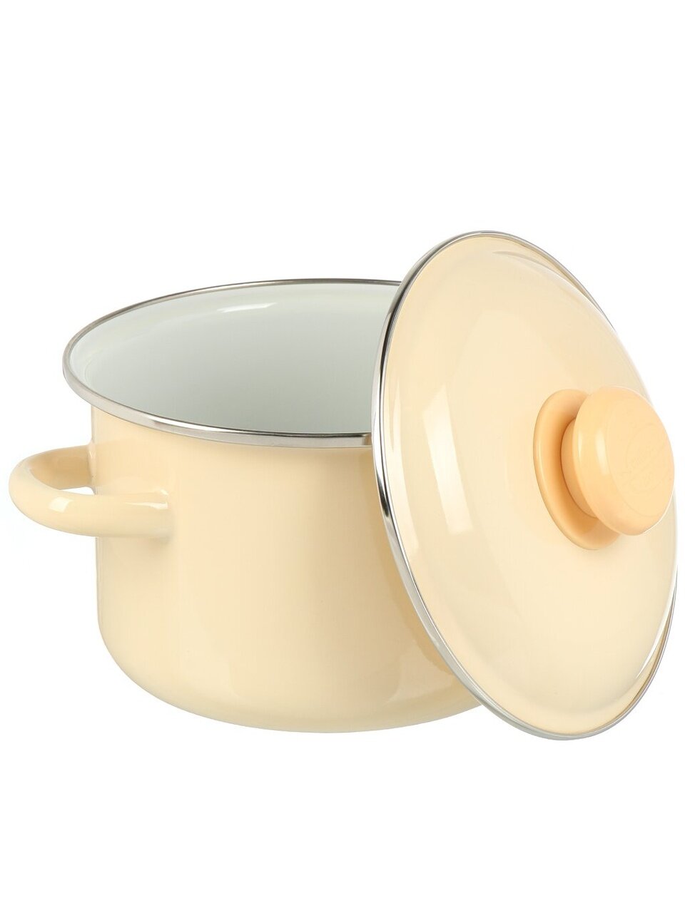 Эмалированная кастрюля 2 л для индукции: долговечная сталь, идеальна для дома и дачи. Стиль «слоновая кость», легко мыть, выгодная цена.