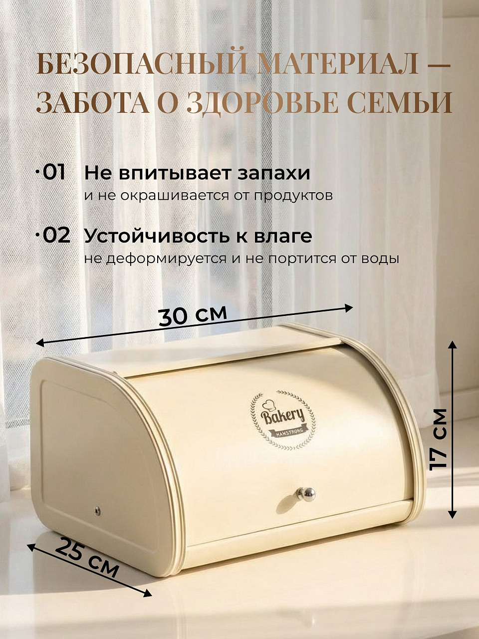 - идеально подходит для хранения хлеба и выпечки, сохраняя их свежесть дольше.