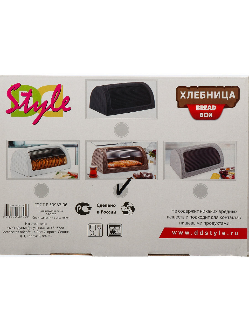 Пластик не боится влаги и перепадов температуры, легко моется, а сдвижная крышка защищает хлеб от высыхания и насекомых.