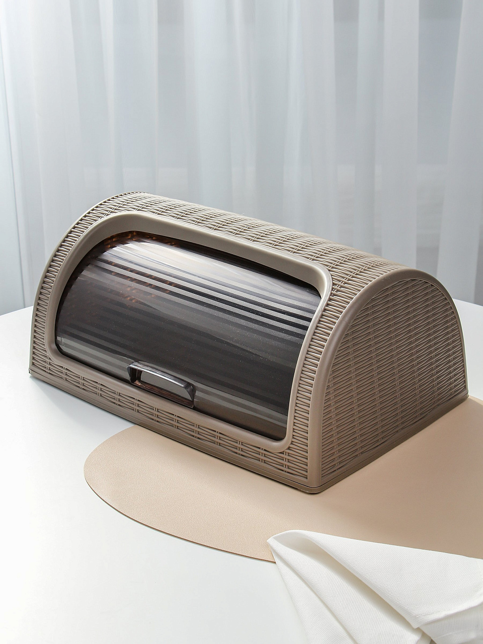 Коричневая хлебница из пластика Dunya Plastik — это практичное решение для хранения хлеба, булочек и выпечки. Благодаря герметичной сдвижной крышке хлеб дольше остается свежим, а пластиковый корпус легко моется и не впитывает запахи. Если вы ищете, какую хлебницу выбрать для кухни или дачи, обратите внимание на вместительность — эта модель рассчитана на несколько изделий, что удобно для больших семей.